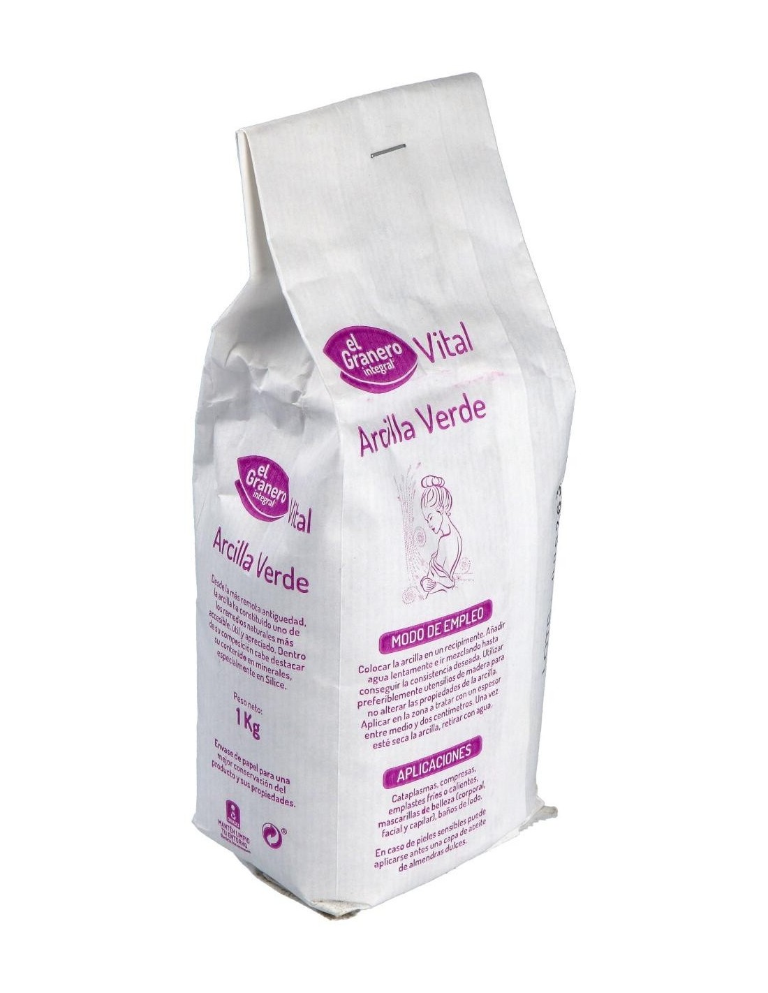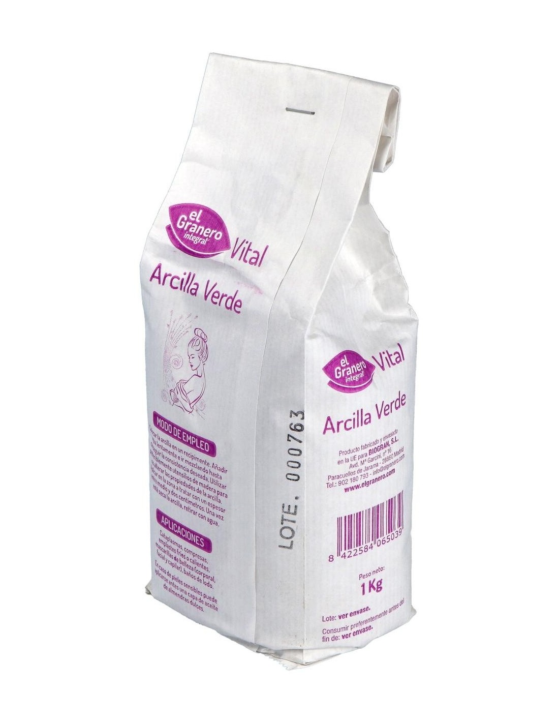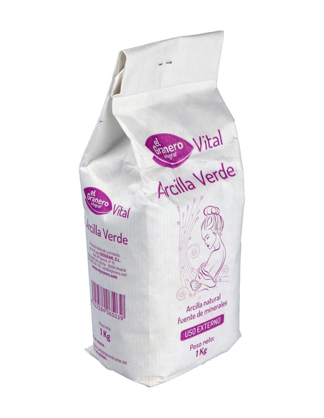 La Arcilla Verde es la fórmula más antigua del mundo útil para dolores, cansancio y belleza. Este producto se usa para cataplasmas, compresas, emplastos fríos o calientes, mascarilla belleza y baños de Iodo, es rica en micronutrientes, aportando a la piel, al cuerpo minerales y oligoelementos. Es calmante de la piel, siendo útil para dolores de articulaciones y músculos.