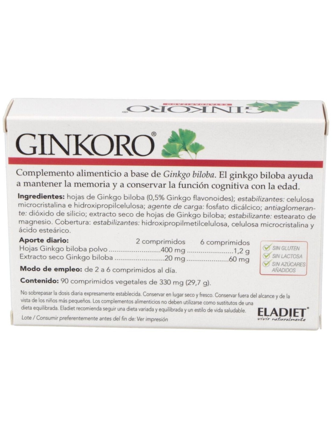 Cogniben Ginkoro de Eladiet es un complemento alimenticio a base de Ginkgo biloba. El ginkgo biloba ayuda a mantener la memoria y a conservar la funci