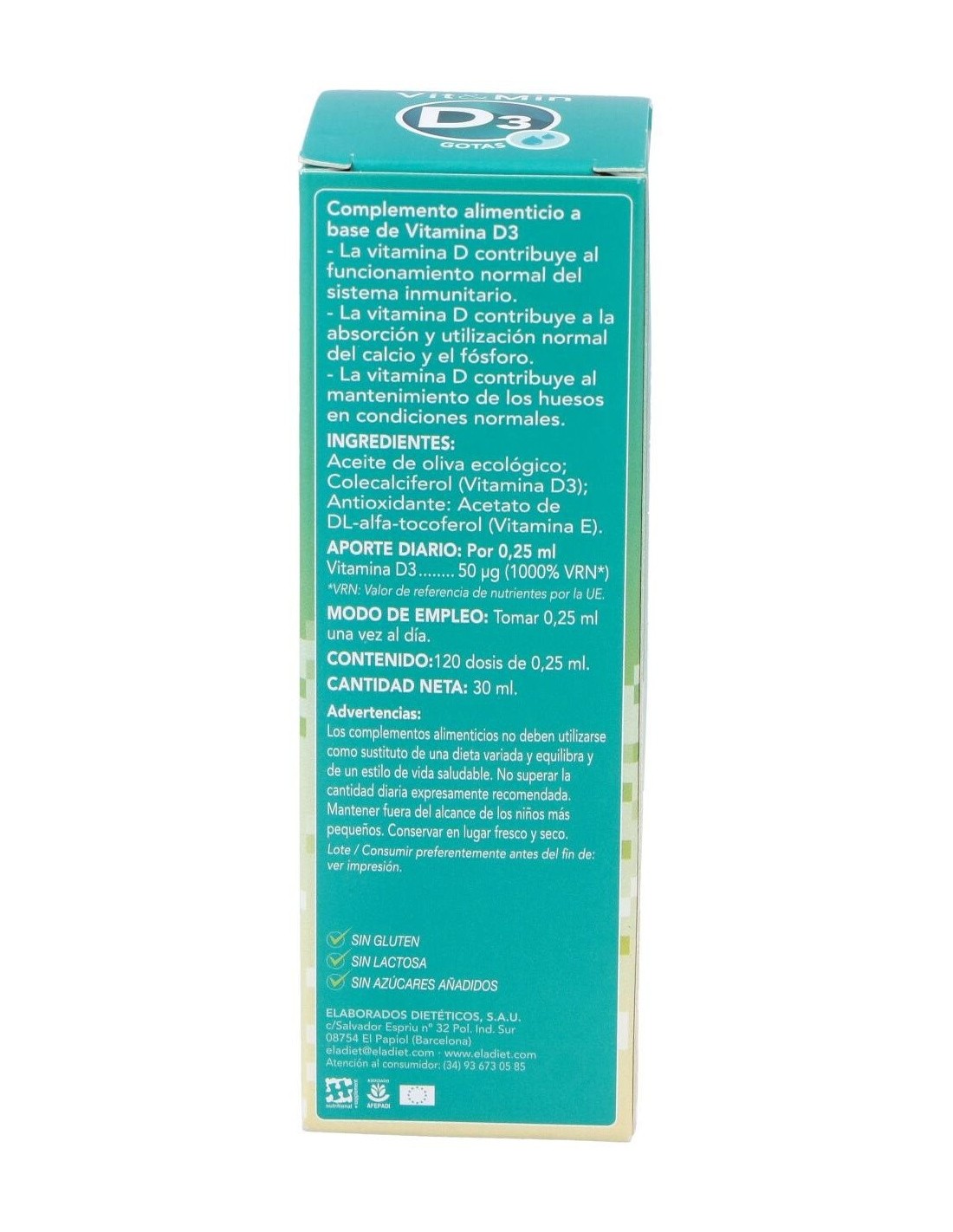 Vit & Min Vitamina D3 30Ml. de Eladiet
