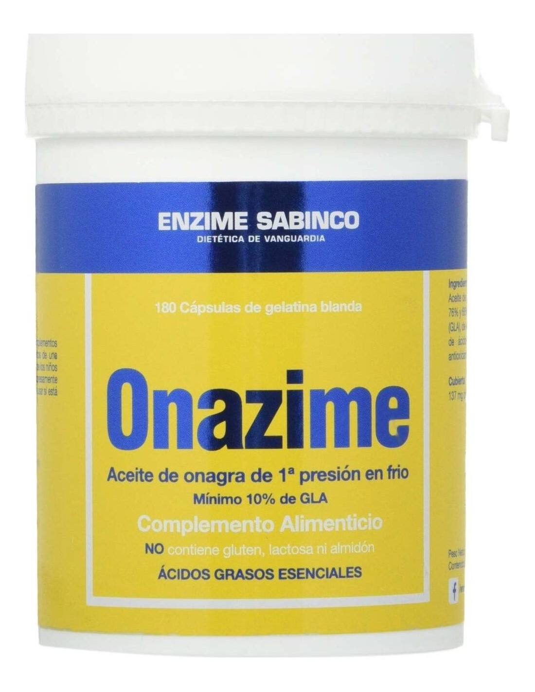 Onazime Aceite Onagra 500Mg. 1 Pr.180Perlas de Enzime - Sabinco