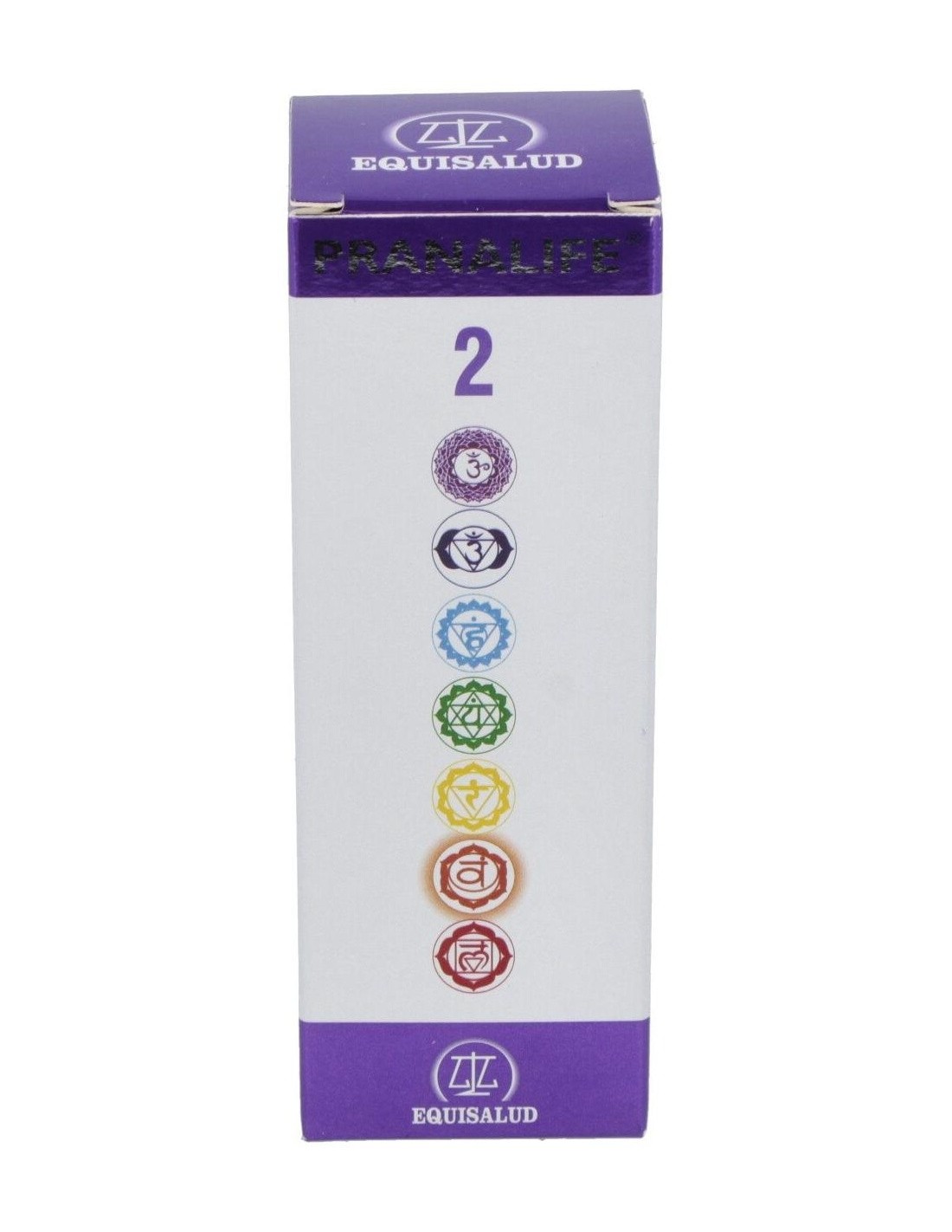 Pranalife 2 ayuda a la capacidad de reproducir y crear en el plano físico: fecundidad, fertilidad, adaptabilidad, flexibilidad, fluidez, sensibilidad, vulnerabilidad. El segundo centro energético (nombre sánscrito Swadisthana). Es el centro sacro.