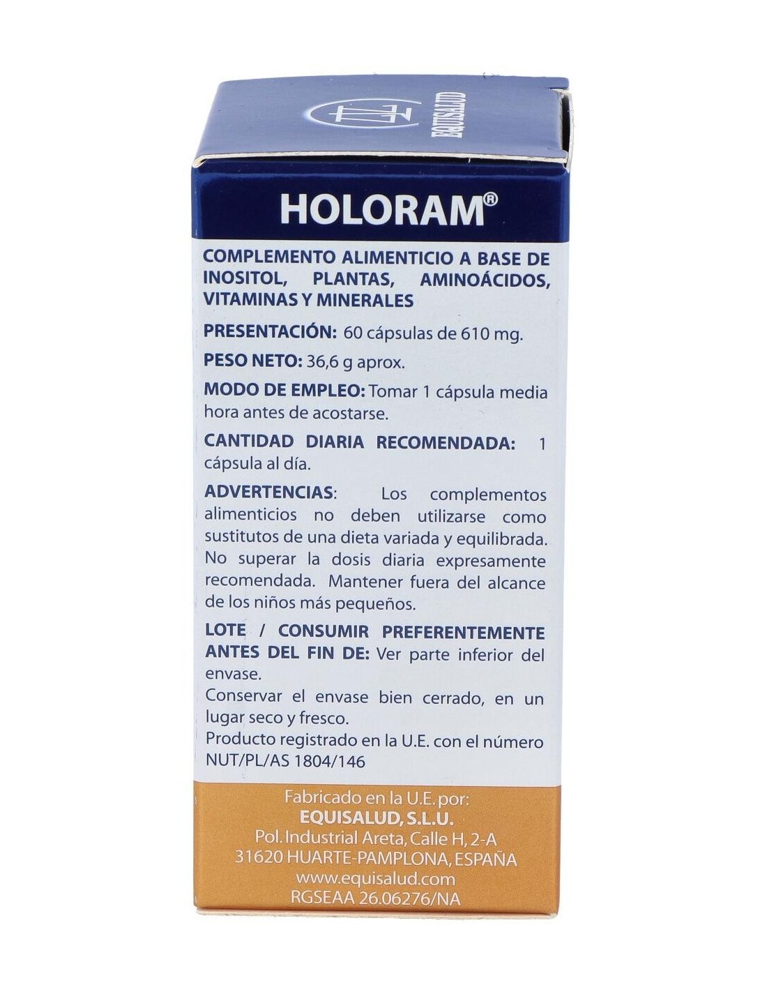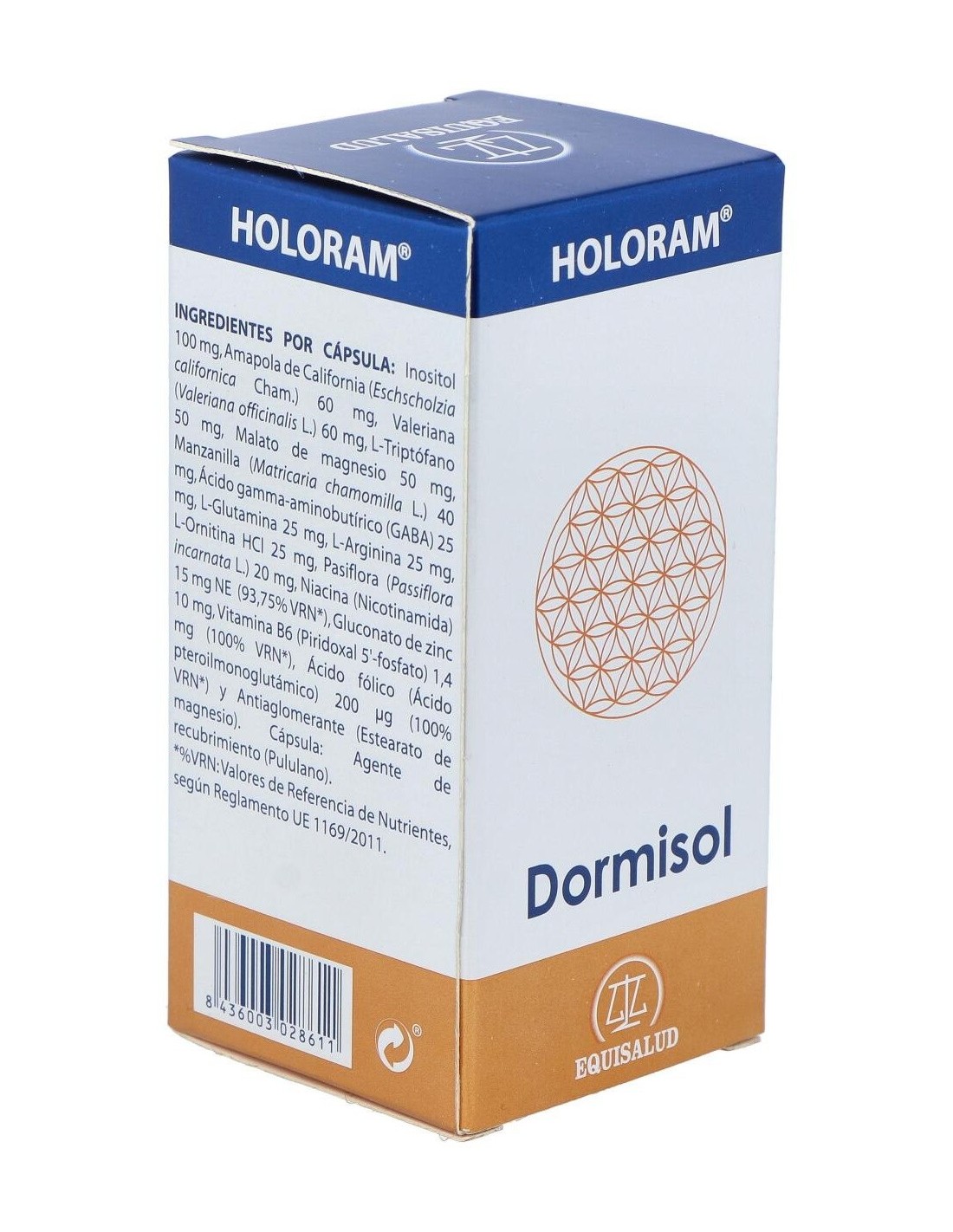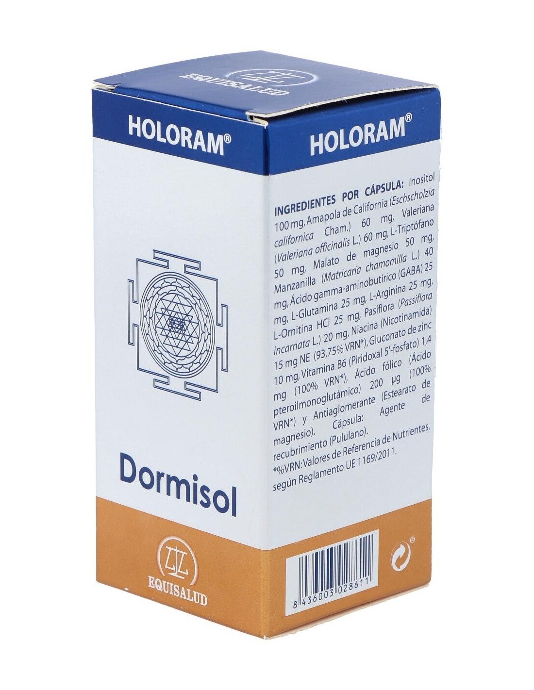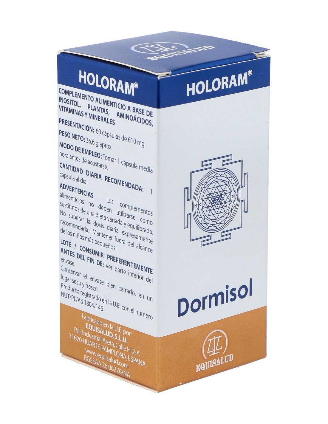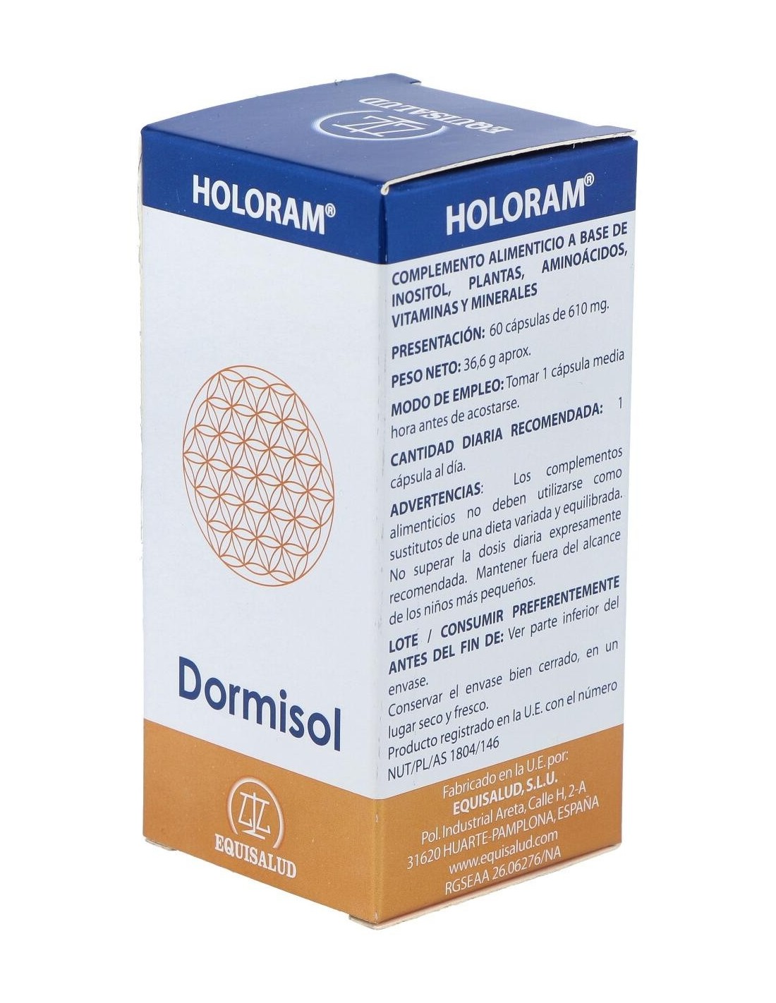 Holoram Dormisol 60Cap. de Equisalud es un suplemento natural para personas que buscan apoyar su descanso, formulado con ingredientes que contribuyen a la relajación y el bienestar nocturno.