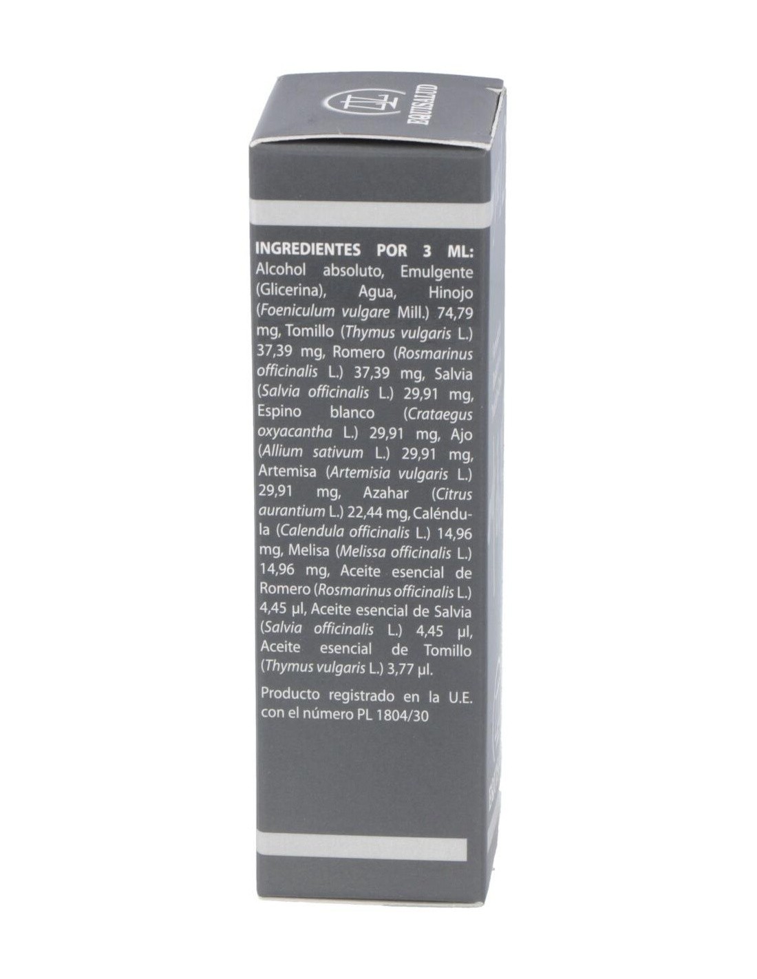 Este síndrome designa una obstrucción a la circulación de la sangre con formación de hematoma debido al estancamiento de energía. En realidad la energía y la sangre superponen sus acciones y el estancamiento de energía también obstruye la circulación sanguínea en una acción común y complementaria. El hígado favorece la circulación de energías y almacena la sangre. Si la energía del hígado se estanca, éste no favorece la circulación de la sangre apareciendo sensaciones dolorosas de plenitud torácica, nerviosismo e inquietud interna. Manifestaciones asociadas a este síndrome: Las patologías que desde la óptica occidental se engloban en este síndrome serían: varices, hemorroides, hematomas, congestiones pélvicas, congestiones intestinales, dolores difusos. Composición:Artemisa (Artemisia vulgaris), Espino Blanco (Crataegus oxyacantha), Hinojo (Foeniculum vulgare), Romero (Rosmarinus officinalis), Salvia (Salvia officinalis), Tomillo (Thymus vulgaris), Ajo (Allium sativum), Caléndula (Calendula officinalis), Melisa (Melissa officinalis), Azahar (Citrus aurantium). Modo de empleo:Tomar de 20 a 30 gotas disueltas en medio vaso de agua, 3 veces al día. Presentación:Frasco de 31 ml.