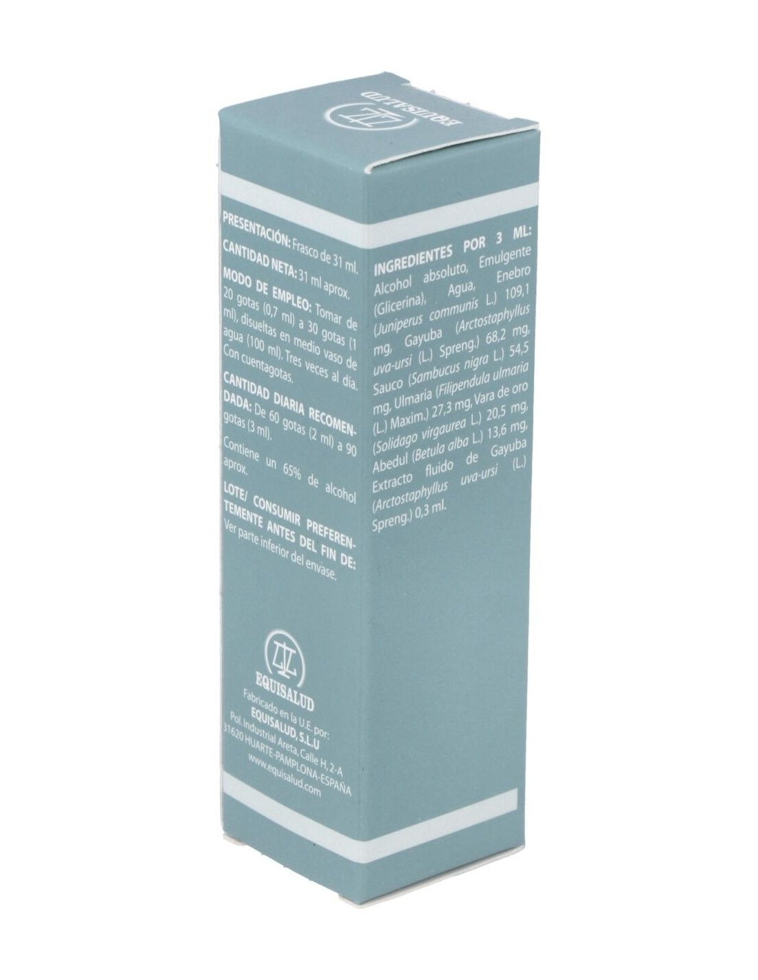 De origen externo (efecto perverso de la humedad y del calor externos) y de origen interno por excesos alimenticios (grasas sobre todo) que producen humedad y calor en el intestino que desciende a vejiga. Manifestaciones asociadas a este síndrome: Cuando la humedad y el calor se acumulan en la vejiga, ésta pierde la capacidad de transformar las energías y aparecen anomalías en la micción, dificultad de evacuar, goteo e imperiosidad. Cuando desciende a vías urinarias aparecen igualmente polaquiuria imperiosa y de coloración amarillo marrón por cierta hematuria o arenillas (herida en la vía YIN). Vientre distendido, fiebre por exceso de calor, lengua roja con capa amarilla y seborréica, pulso rápido y amplio. Si no se trata a tiempo la humedad-calor sube al riñón que está acoplado en BIAO-LI con la vejiga, produciendo lumbalgias y/o fiebre. Este síndrome interviene en la constitución de ciertos cólico nefríticos, prostatitis aguda por colibacilos e infecciones del sistema urinario (cistitis). Composición:Abedul (Betula alba), Gayuba (Arctostaphylos uva-ursi), Enebro (Juniperus communis), Saúco (Sambucus nigra), Ulmaria (Filipendula ulmaria), Vara de Oro (Solidago virga-aurea). Modo de empleo:Tomar de 20 a 30 gotas disueltas en medio vaso de agua, 3 veces al día. Presentación:Frasco de 31 ml.
