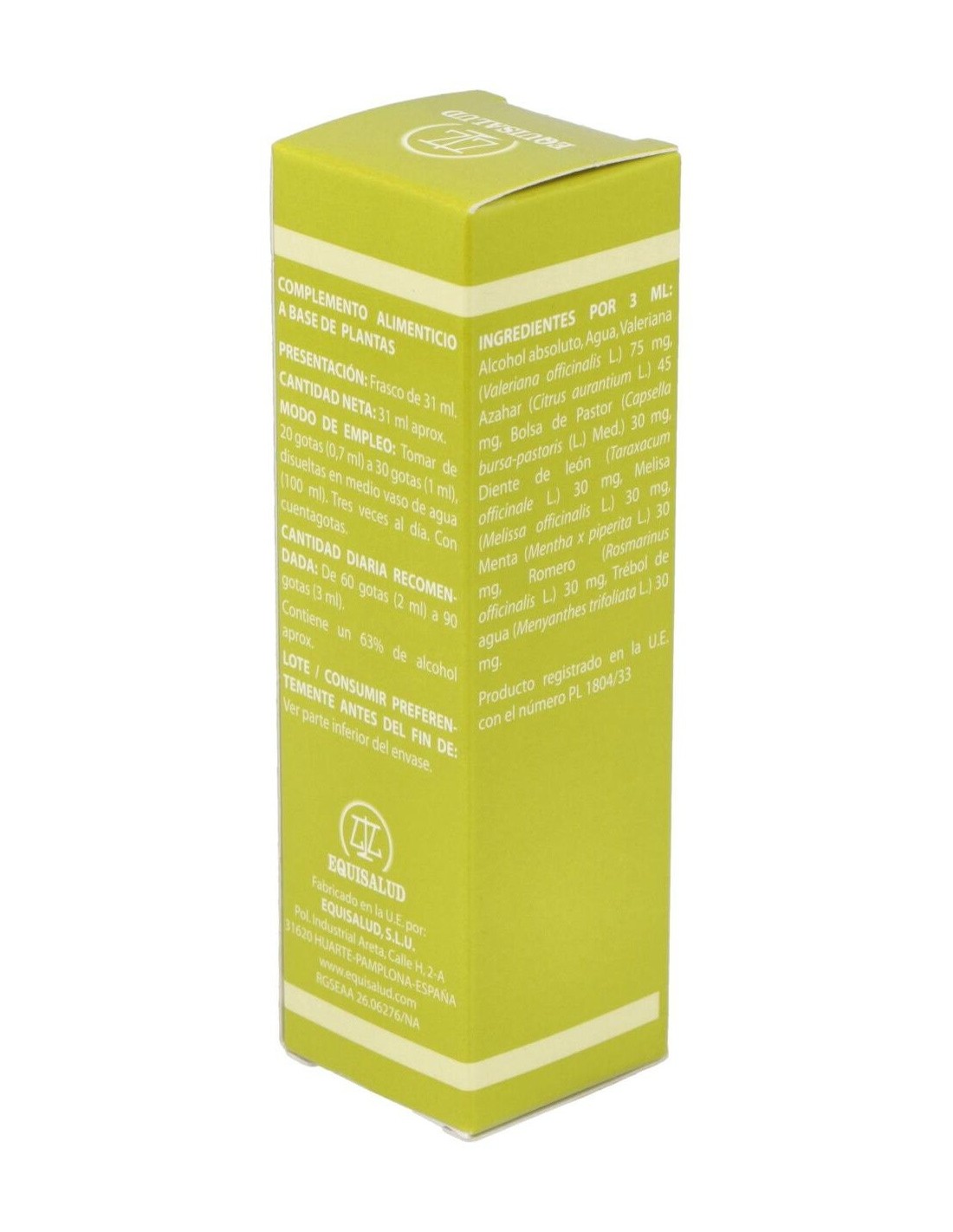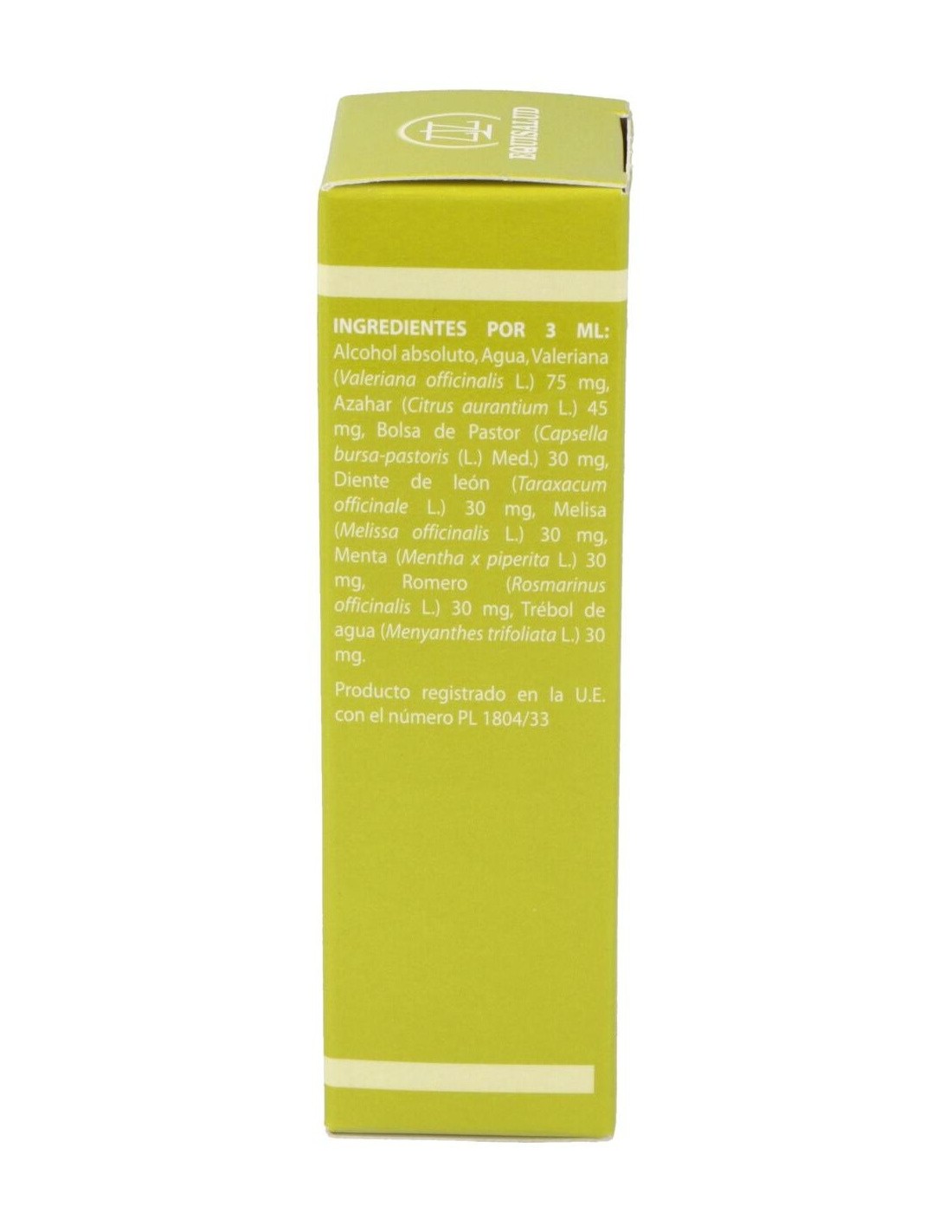 En este caso existe una debilidad o vacío de Yin de Riñón con un exceso de Fuego de Corazón; es decir, hay un vacío de agua del Riñón que provoca que no pueda humedecer y refrescar el Fuego de Corazón, por lo que este se descontrola y está en exceso. Suele ser debido a ataque de Energías Perversas exógenas, enfermedades crónicas, exceso de trabajo, 7 pasiones, exceso de actividad sexual. Manifestaciones asociadas a este síndrome: acúfenos, agitación, ansiedad, calor en los 5 huecos, dolor y/o en la zona lumbar y rodillas, espermatorrea, sudoración nocturna, euforia, excitación de la libido, hipertensión arterial, olvidos y despistes, insomnio, nerviosismo, palpitaciones, pérdida de memoria, sequedad de boca y garganta, sudoración nocturna, vértigo. En ocasiones, dolor y frío en la rodilla y zona lumbar. Lengua roja y seca, con poca capa. Pulso rápido y fino. Composición:Valeriana (Valeriana officinalis), Azahar (Citrus aurantium), Melisa (Melissa officinalis), Menta (Mentha x piperita), Bolsa de Pastor (Capsella bursa pastoris), Diente de León (Taraxacum officinale), Trébol de Agua (Menyanthes trifoliata), Romero (Rosmarinus officinalis). Modo de empleo:Tomar de 20 a 30 gotas disueltas en medio vaso de agua, 3 veces al día. Presentación:Frasco de 31 ml.