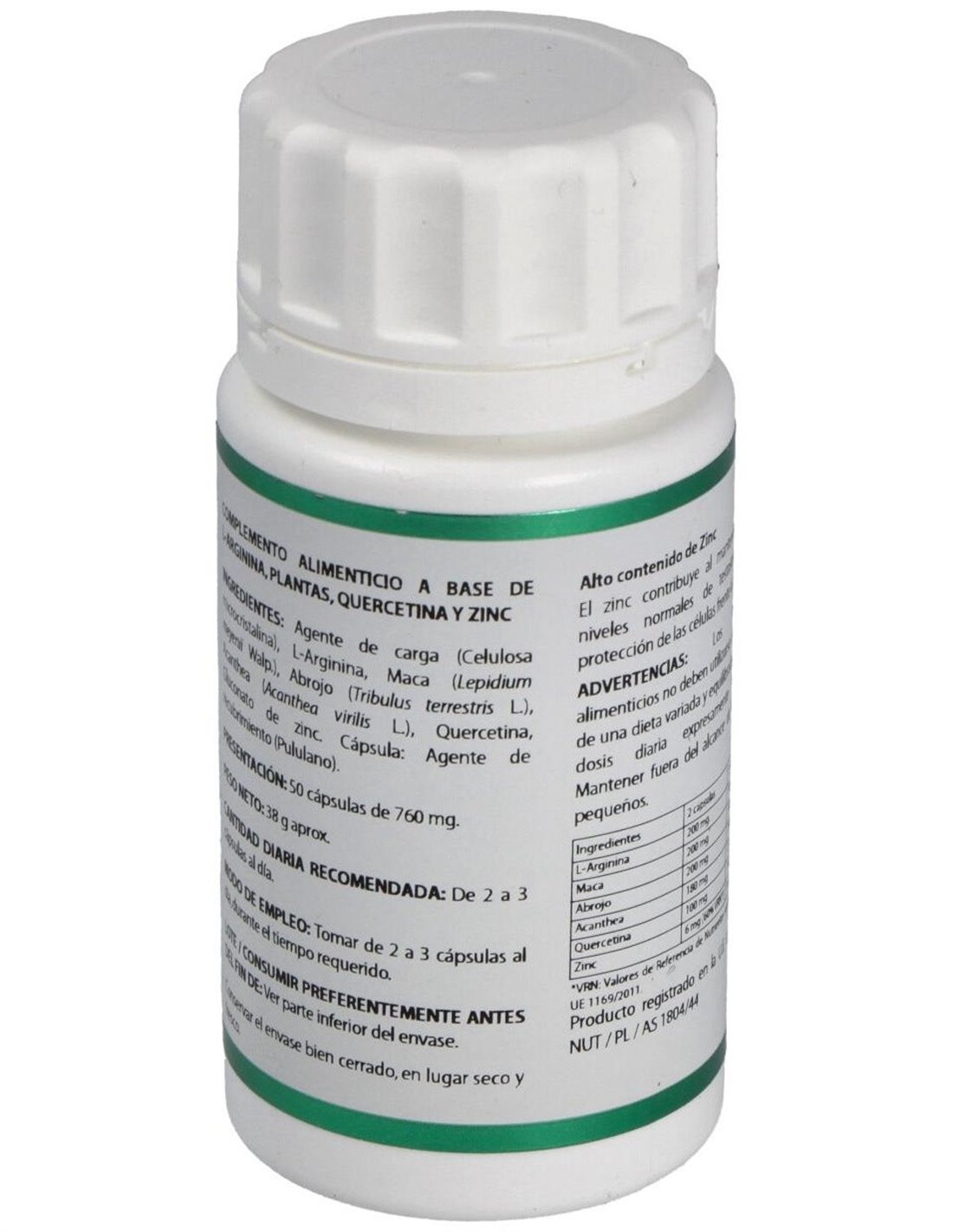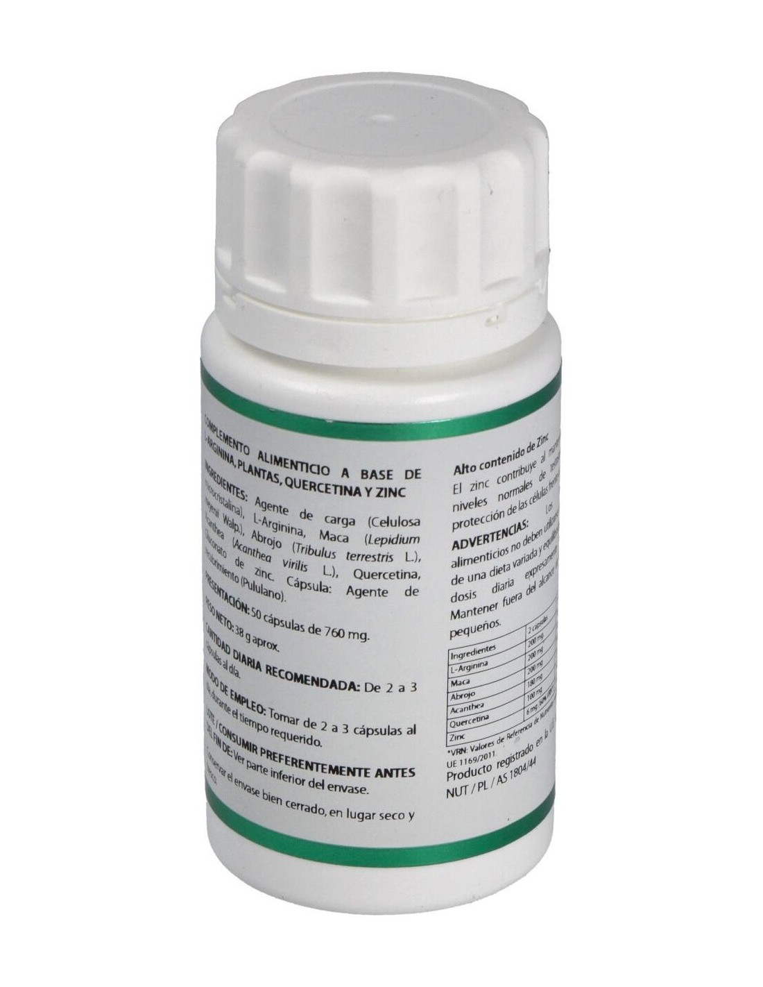 Maca (Lepidium meyenii): Crece en las altiplanicies andinas de Perú, a 4000-4500 metros. Se emplea en la zona de origen, como afrodisíaca y para favorecer la fertilidad tanto en hombres como en mujeres. Además, se usa popularmente en el tratamiento de la depresión, para el mejor rendimiento de los deportistas, en alteraciones de la memoria y trastornos en la menstruación y en los síntomas de la menopausia, como los sofocos, osteoporosis, sequedad vaginal. Contiene, entre otros principios activos, quercetina y fitosteroles o fitohormonas. Se podría afirmar, según experiencias con animales, que esta planta es un modulador de la producción de esperma. También hay un ligero incremento de la actividad sexual y un alargamiento del tiempo de eyaculación. En cuanto a la progesterona, se ha visto que hay un ligero aumento de la misma. Influye también sobre la próstata, disminuyendo su tamaño y peso. También se ha visto que mejora la estructura y densidad de la masa ósea. Estos estudios se han hecho a dosis muy superiores a las administradas en estas cápsulas, e incluso a esas dosis la planta está carente de efectos secundarios.
