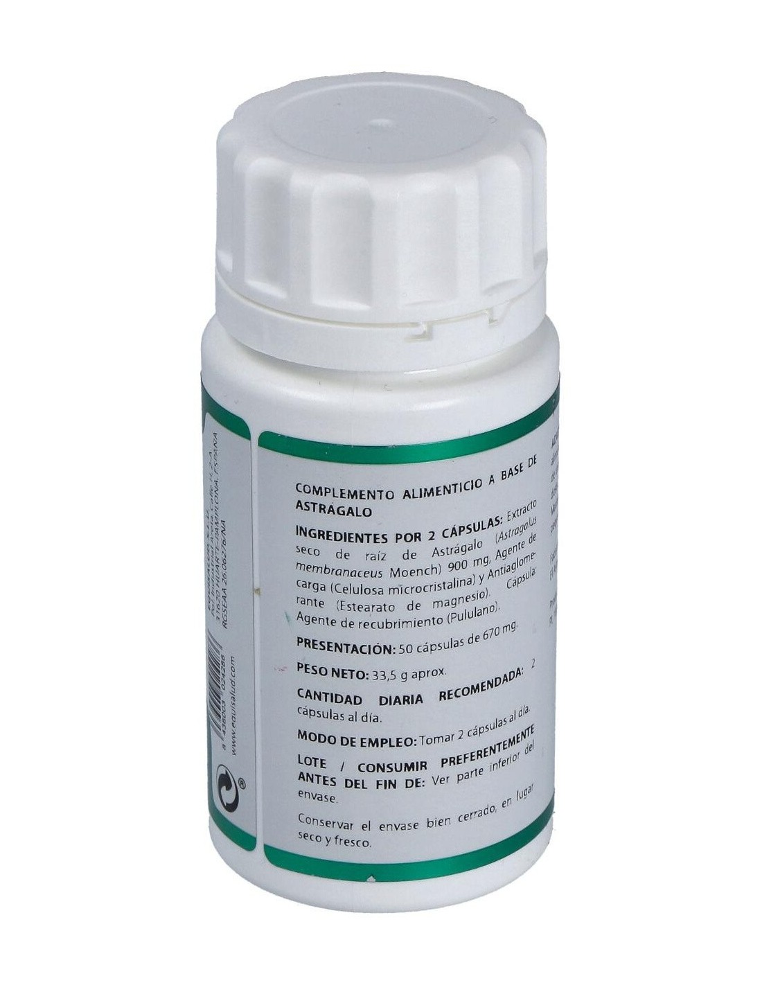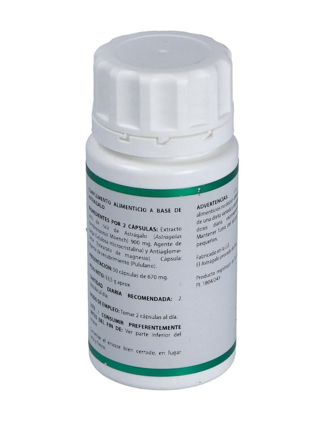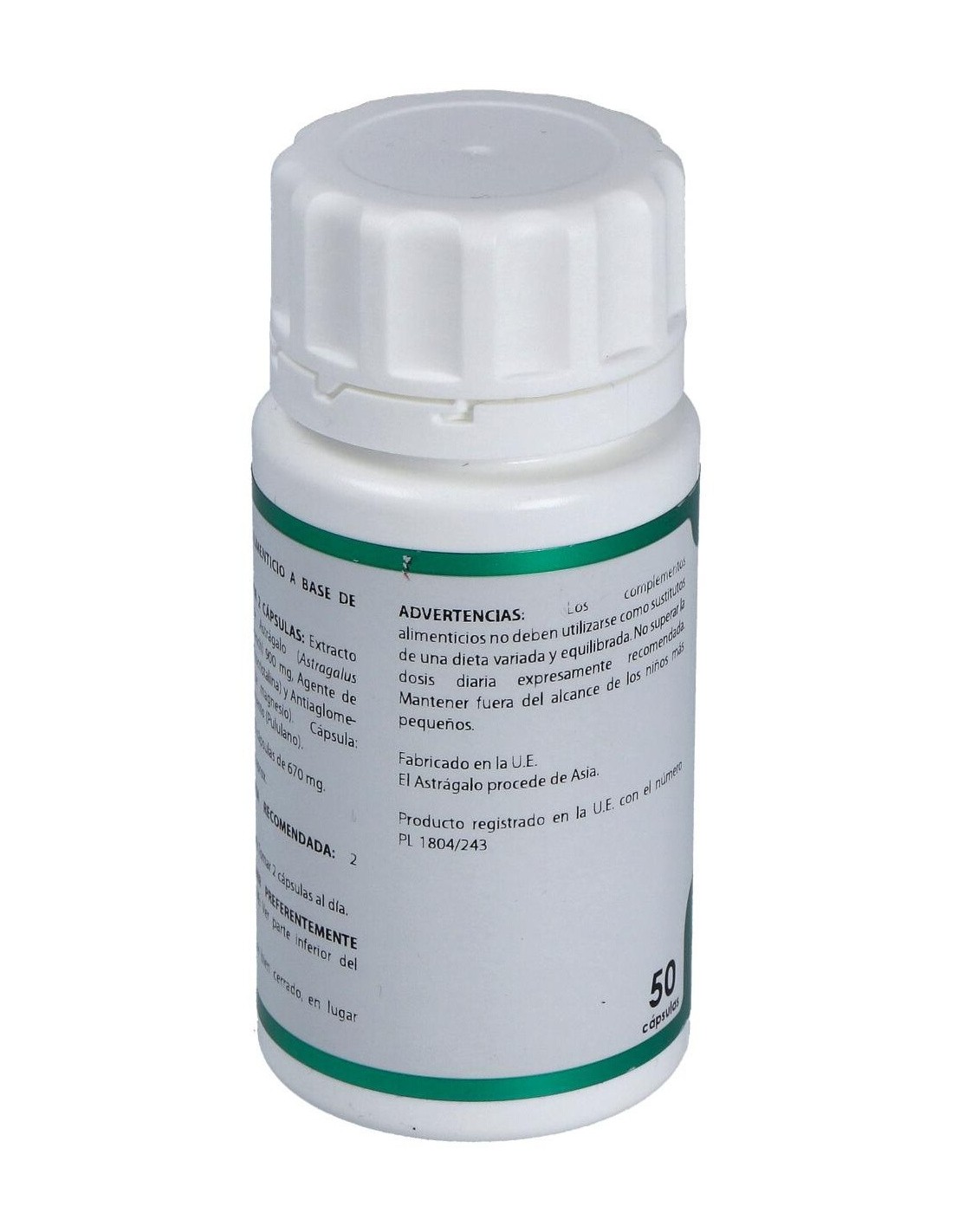 La raíz de Astrágalo está indicada en el tratamiento de enfermos con el sistema inmune comprometido, infecciones víricas y pacientes con hipertensión arterial. Puede disminuir la hiperactividad inmune en pacientes con lupus eritematoso sistémico y miastenia grave por lo que se recomienda su utilización en estos casos. Además se puede indicar a enfermos con SIDA, hepatitis viral y enfermedad vascular periférica. También se emplea en casos de asma, úlcera péptica, trastornos respiratorios, diarrea e infecciones en general producidas por Diplococcus, Staphylococcus y Streptococcus. En Medicina Tradicional China también se utiliza en diabetes, cardiopatías y en la enfermedad de Alzheimer. Se usa como regulador metabólico en el síndrome metabólico. También tonifica el bazo, la sangre y el Qi y se usa para tratar el síndrome de agotamiento y sed. Ayuda así al fortalecimiento de la resistencia del cuerpo a la enfermedad y combatir la fatiga. Ingredientes por cápsula:450 mg de astrágalo (Astragalus membranaceus, raíz, 16% polisacáridos). Modo de empleo:Tomar 2 cápsulas al día. Presentación:Bote de 50 cápsulas.