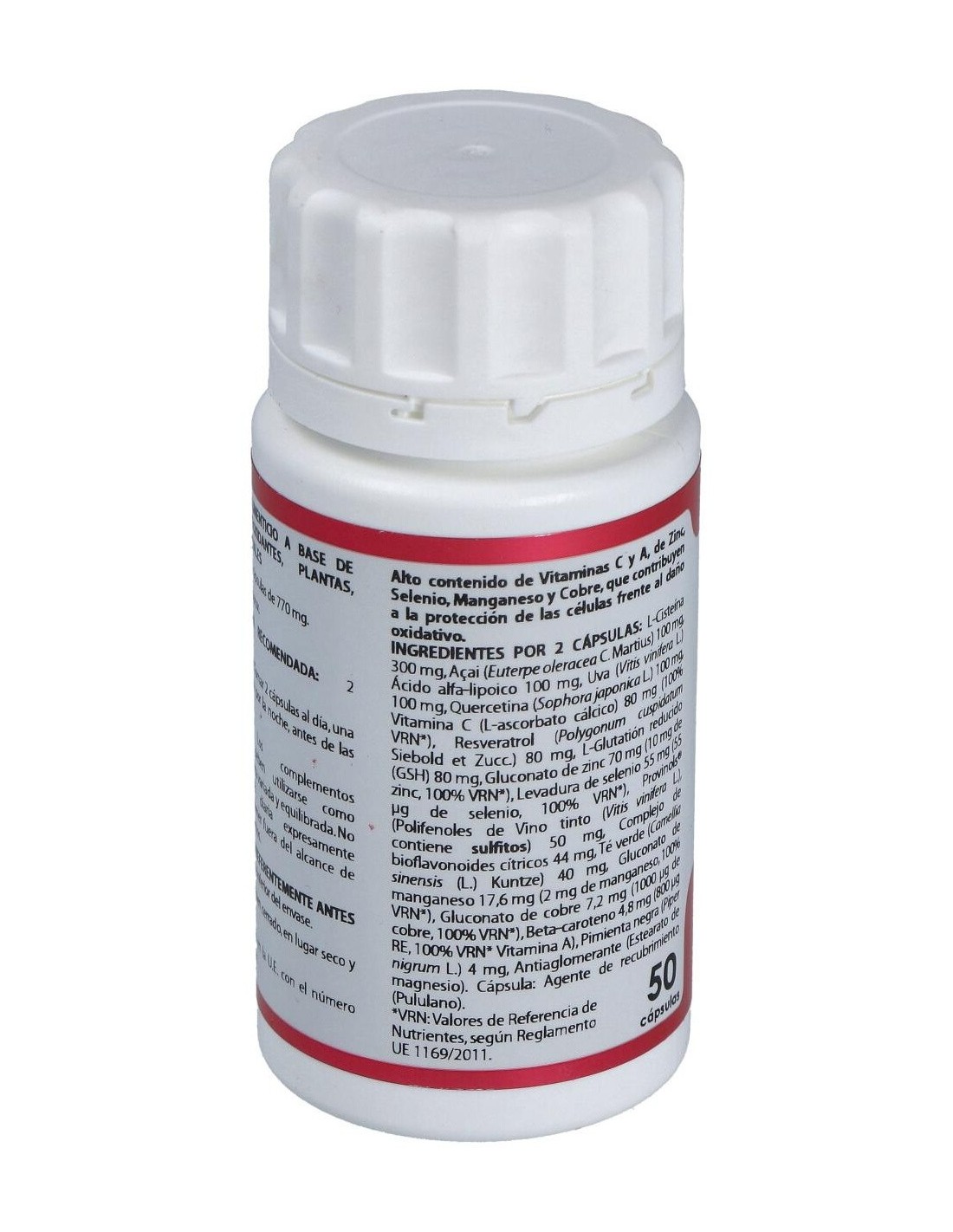 Esta formulación contiene un conjunto de los más importantes antioxidantes, aportando un efecto protector, para hacer terapias de choque o bien preventivas, en multitud de situaciones en que el sistema defensivo de las sustancias de oxígeno pueda fallar.Composición por cápsula: