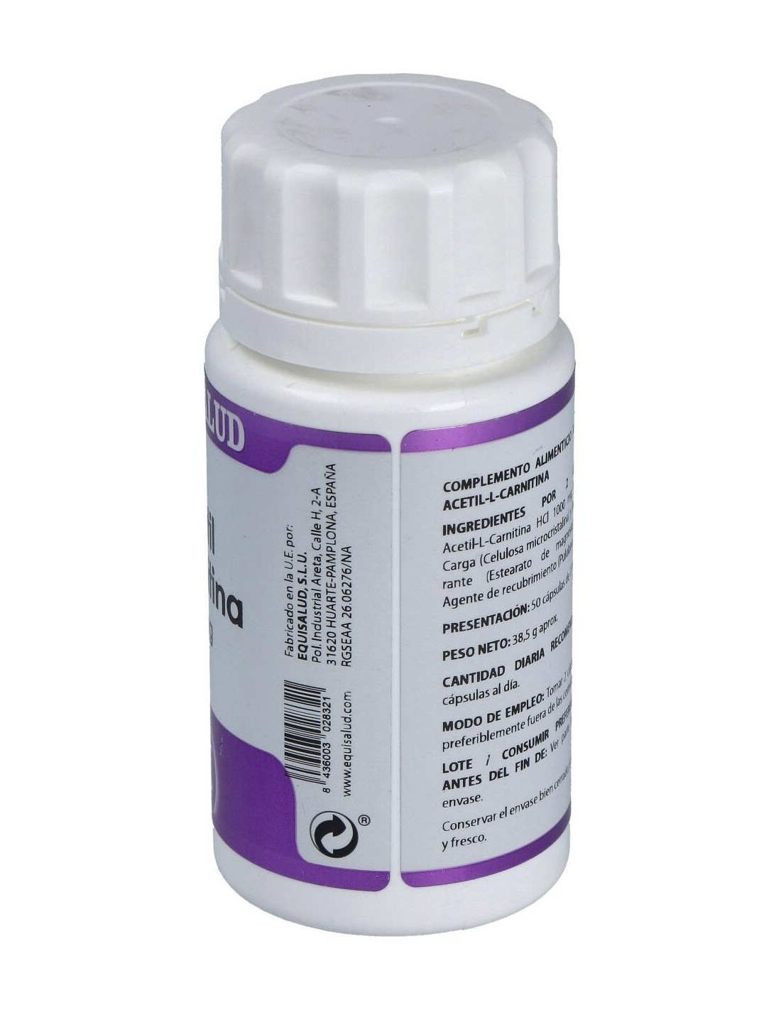 Composición por cápsula:500 mg de Acetil L-Carnitina (HCl).Modo de empleo:Tomar 2 cápsulas al día fuera de las comidas.Presentación:Bote de 50 cápsulas.