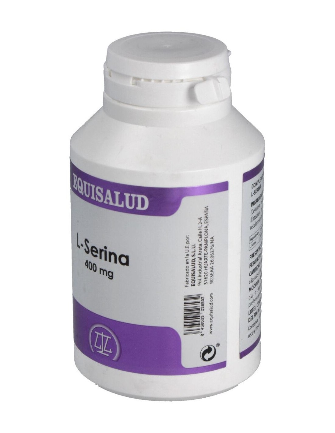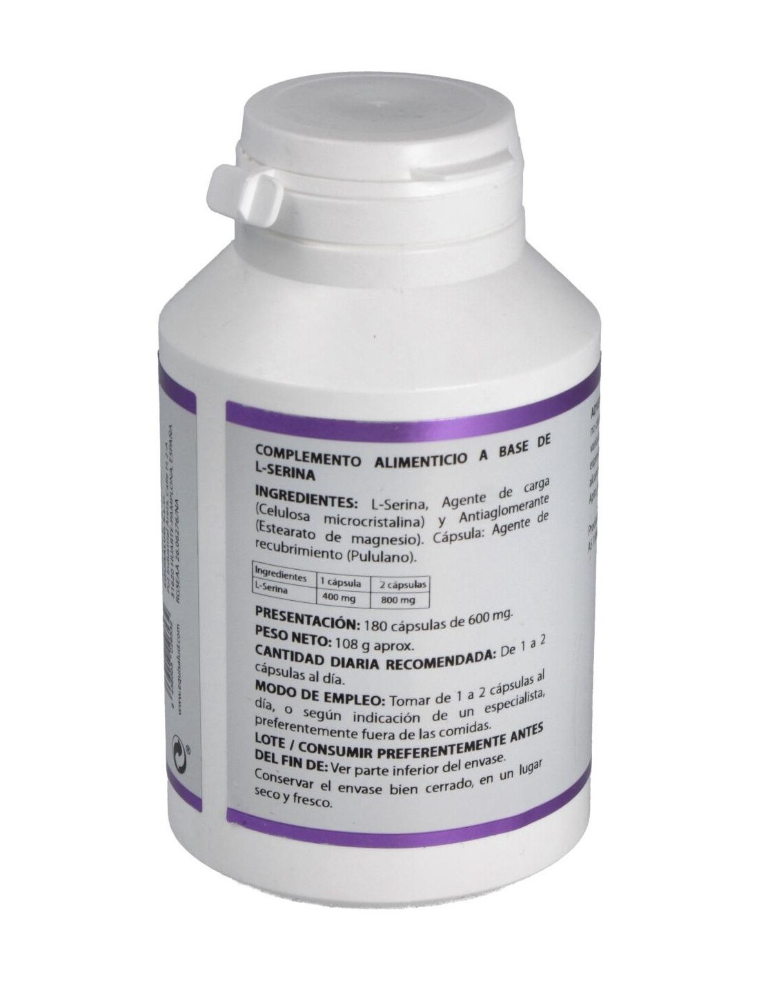 L- Serina 400 mg, Celulosa microcristalina, Estearato de magnesio.