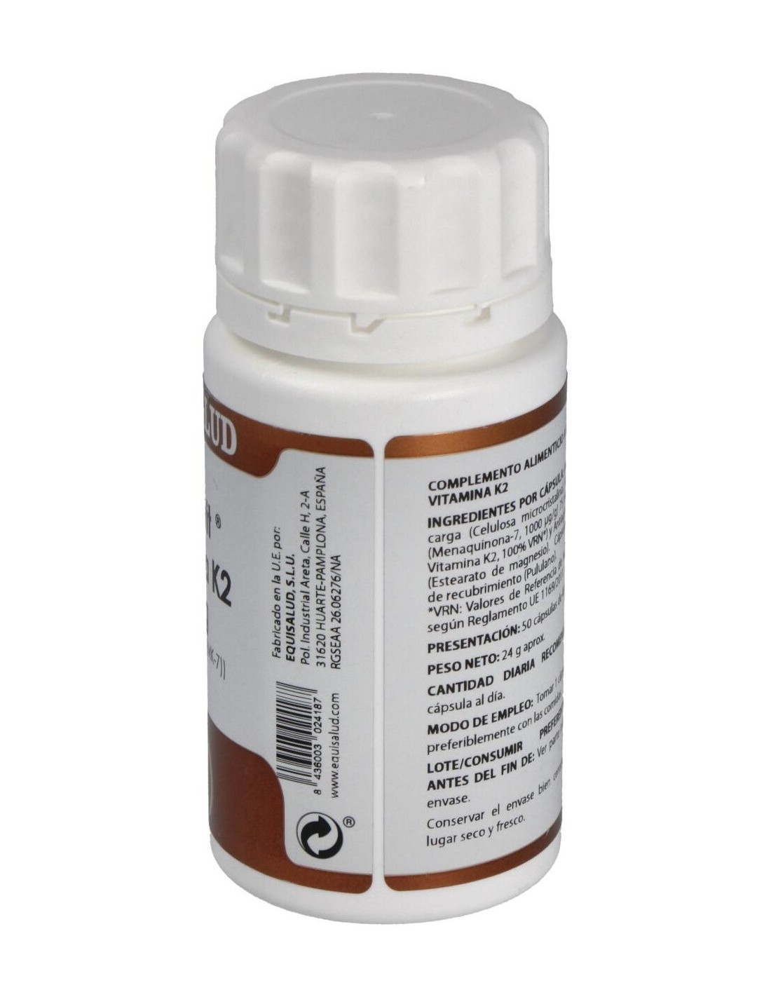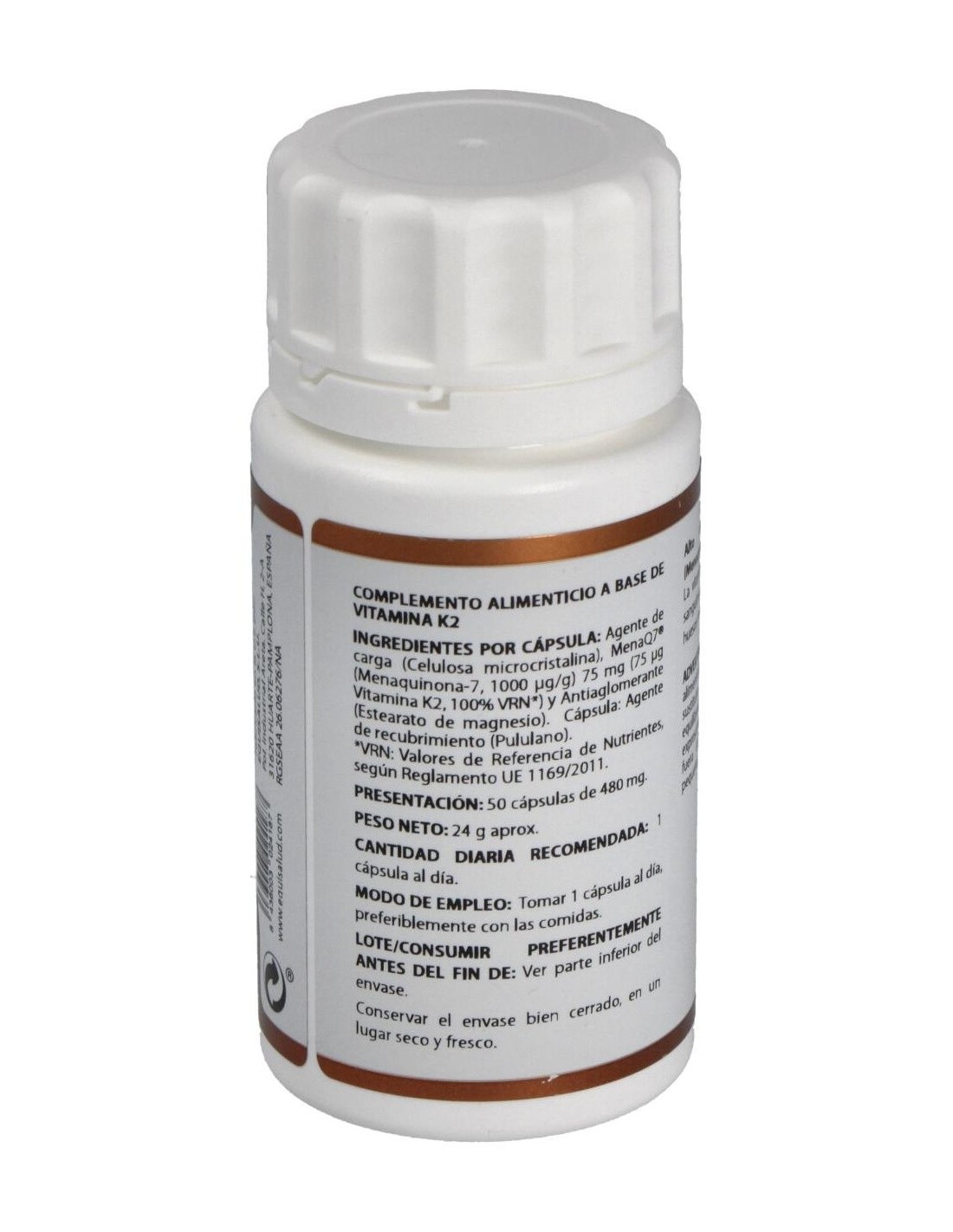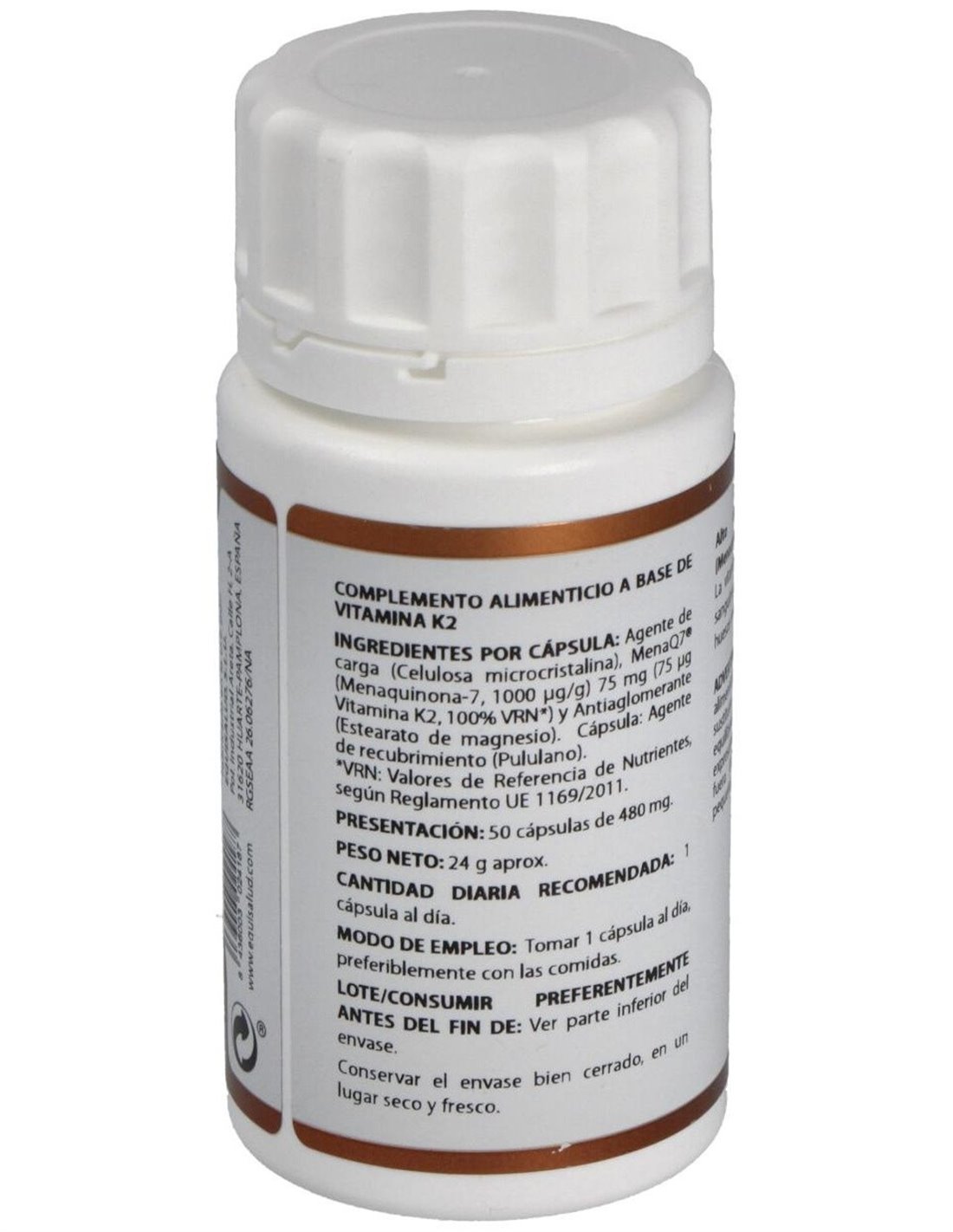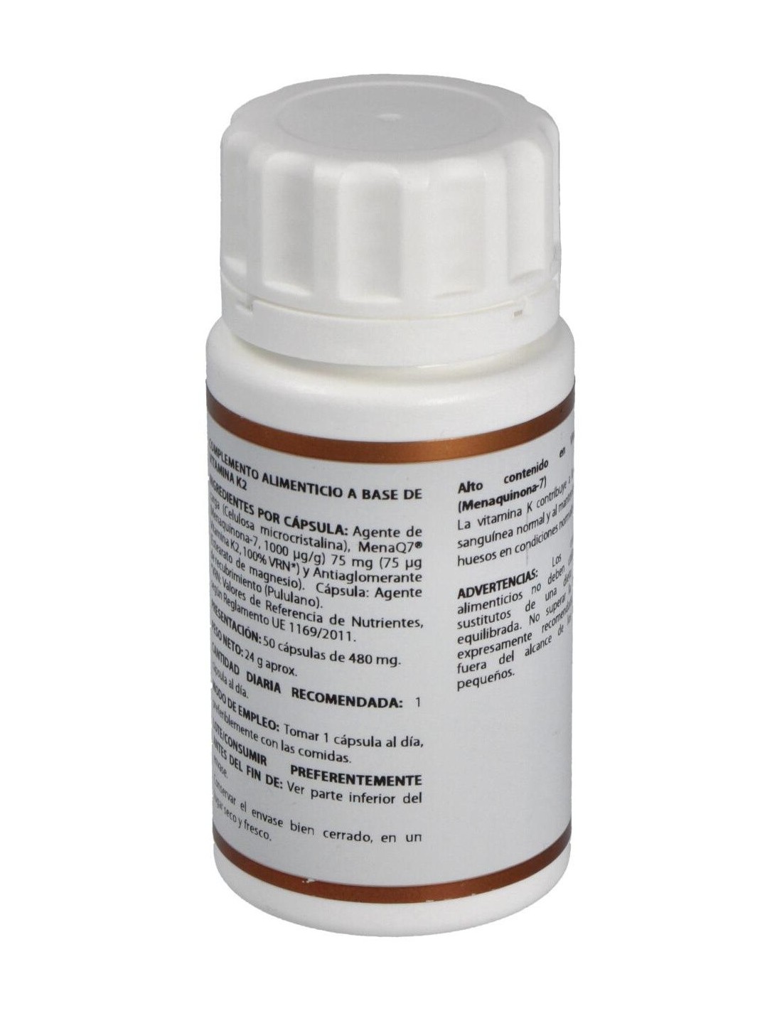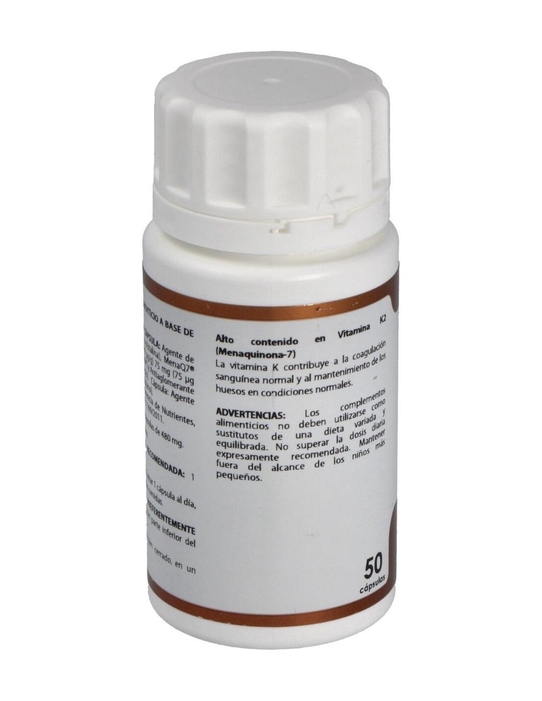 La Vitamina K es imprescindible para permitir que el flujo de calcio del torrente sanguíneo llegue a los huesos y a la médula ósea. Ingredientes activos por cápsula:75 mcg de MenaQ7® (1.000 mcg de Vitamina K2/g).Modo de empleo:Tomar 1 cápsulas al día.Presentación:Bote de 50 cápsulas.