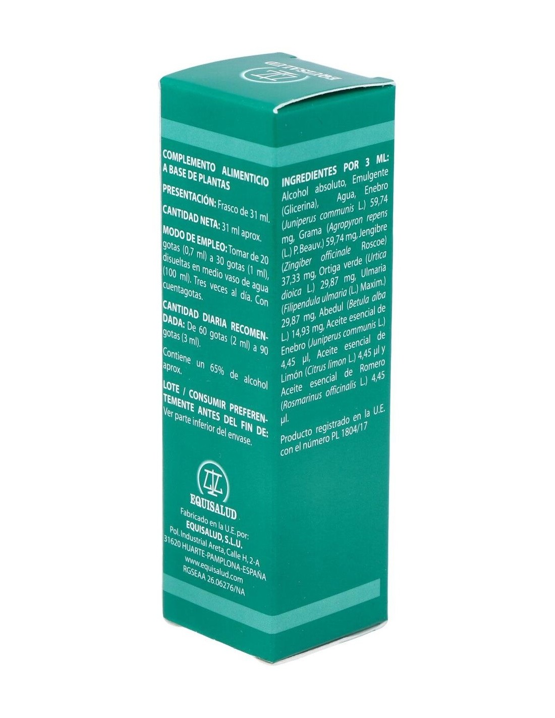 Se unen plantas drenadoras principalmente, antiinflamatorias, estimulantes del metabolismo general, remineralizantes y antálgicas. Composición: