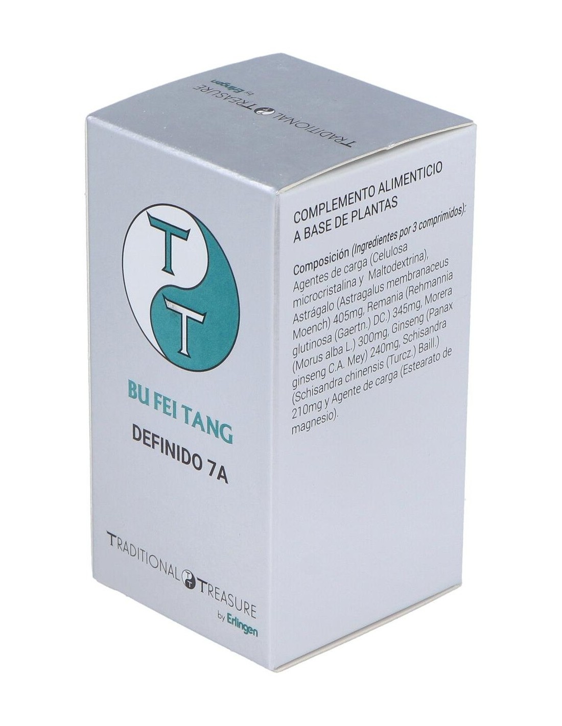 Agentes de carga (Celulosa microcristalina y Maltodextrina), Astrágalo (Astragalus membranaceus Moench) 405 mg, Remania (Rehmannia glutinosa (Gaertn.) DC.) 345 mg, Morera (Morus alba L.) 300 mg, Ginseng (Panax ginseng C.A. Mey) 240 mg, Schisandra (Schisandra chinensis (Turcz.) Baill.) 210 mg y Agente de carga (Estearato de magnesio).