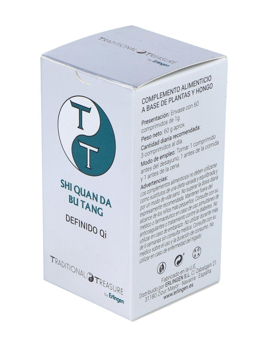 Ginseng (Panax Ginseng C.A. Meyer), Poria (Poria Cocos Wolf), Atractilodes (Atractylodes Macrocephala Koidz.), Astrágalo (Astragalus Membranaceus Moench), Angélica (Angelica Sinensis Diels), Mandarina (Citrus Reticulata Blanco), Schisandra (Schisandra Chinensis (Turcz.) Baill.), Dioscorea (Dioscorea Opposita Thunb.), Renania (Rehmannia Glutinosa (Gaertn.) Libosch.), Canela (Cinnamomum Zeylanicum Blume), Clavo (Syzygium Aromaticum L.) Merr. Et L.M. Perry), Tomillo (Thymus Vulgaris L.), Nogal (Juglans Regia L.), Genciana (Gentiana Lutea L.), Morera (Morus Alba L.), Helenio (Inula Helenium L.), Romero (Rosmarinus Officinalis L.) Y Agentes de Carga (Celulosa Microcristalina, Maltodextrina Y Estearato de Magnesio).