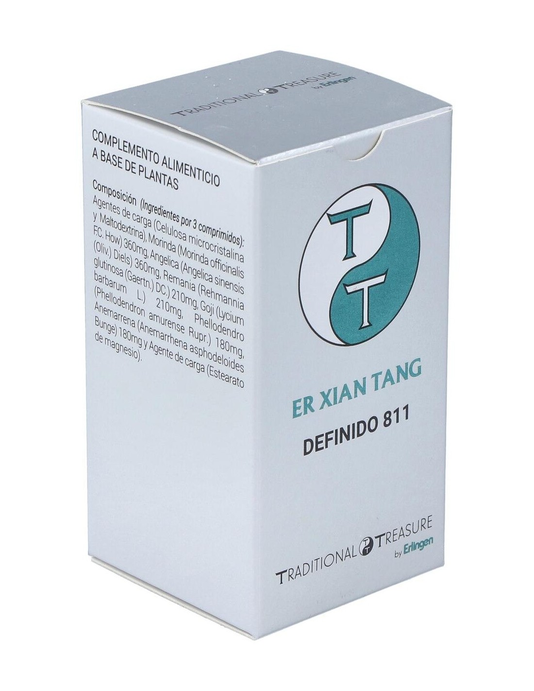 Agentes de carga (Celulosa microcristalina y Maltodextrina), Morinda (Morinda officinalis F.C. How) 360mg, Angelica (Angelica sinensis (Oliv.) Diels) 360mg, Remania (Rehmannia glutinosa (Gaertn.) DC.) 210mg, Goji (Lycium barbarum L.) 210mg, Phellodendro (Phellodendron amurense Rupr.) 180mg, Anemarrena (Anemarrhena asphodeloides Bunge) 180mg y Agente de carga (Estearato de magnesio).