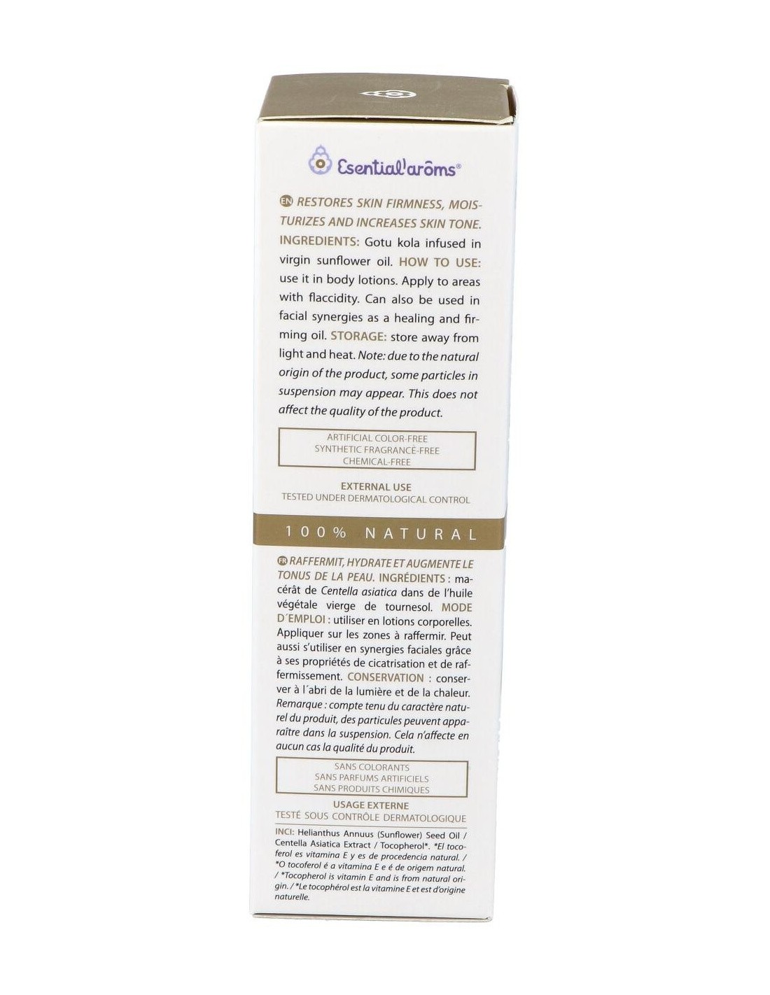 El extracto Lipídico de Centella Asiática de Esential'Aroms es un producto obtenido a través de la maceración de la planta. La centella asiática se ha utilizado tradicionalmente por sus propiedades regeneradoras, cicatrizantes y restauradoras del tejido conjuntivo. Conviene a las pieles con flacidez y celulitis, ayuda a que los tejidos retomen su forma. Se utiliza también en tratamientos faciales antiarrugas.Propiedades e indicaciones: