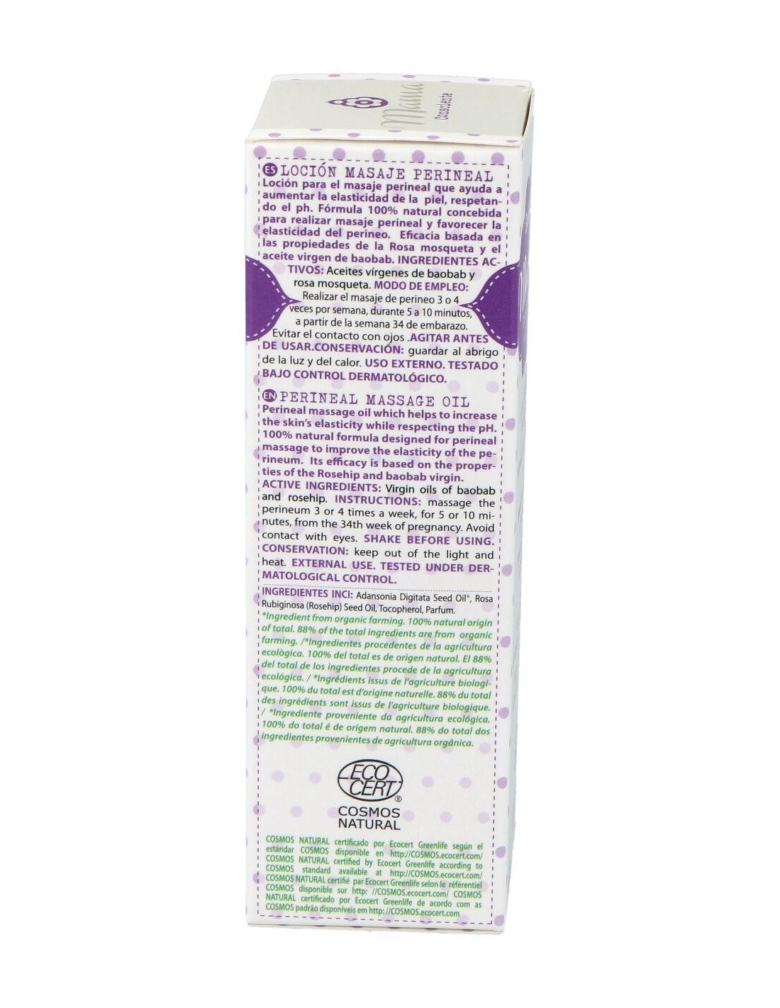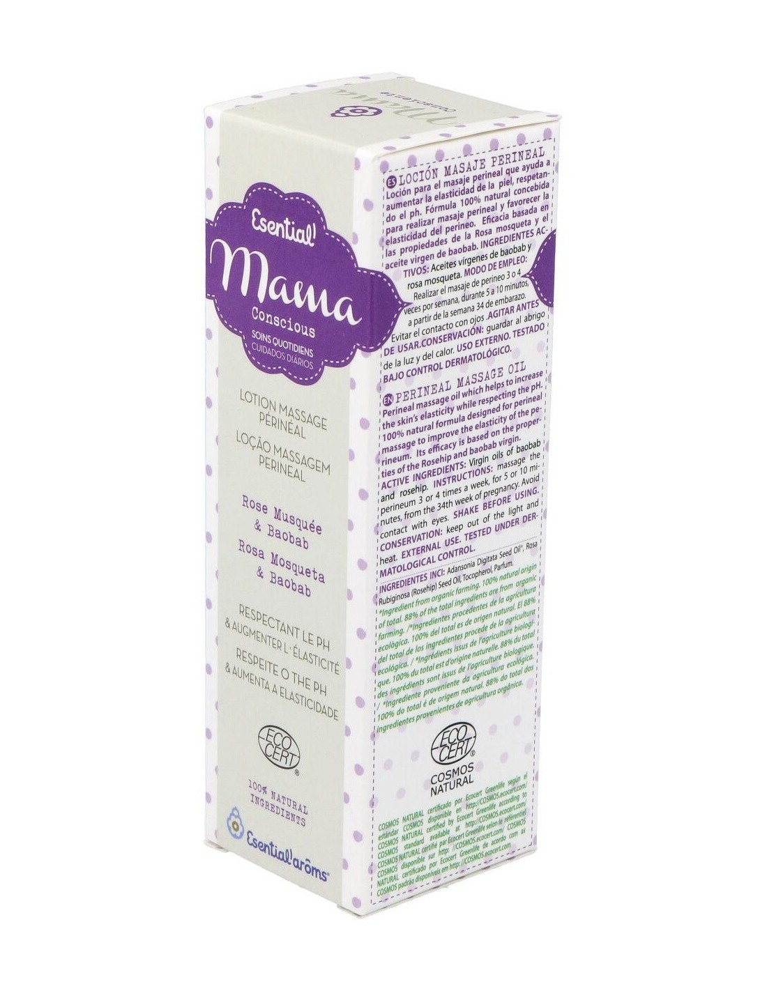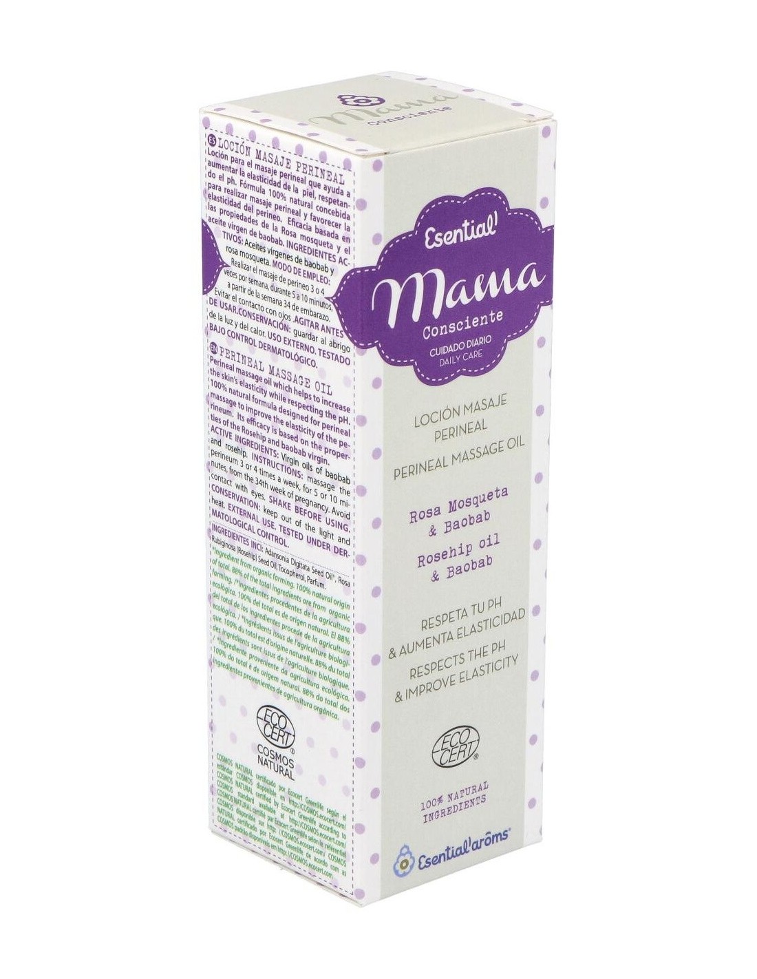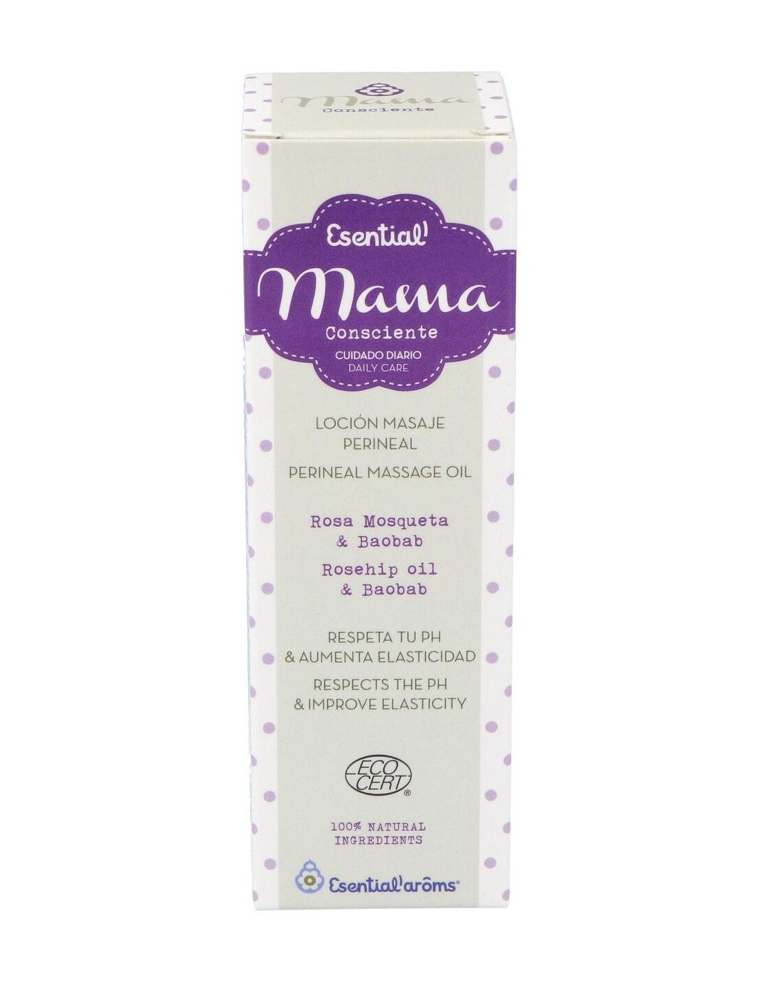 Fórmula 100% natural concebida para realizar masaje perineal y favorecer la elasticidad del perineo. Eficacia basada en las propiedades de la rosa mosqueta y el aceite virgen de baobab.