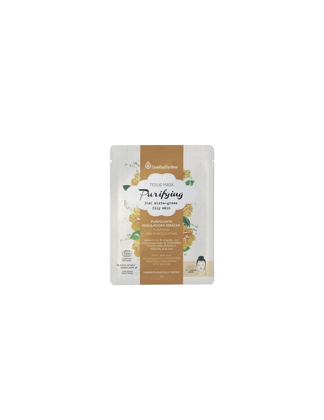 Tissue Mask Purifying de Esential'Aroms es una mascarilla de algodón especialmente recomendada para el tratamiento en pieles mixtas con tendencia a grasa.