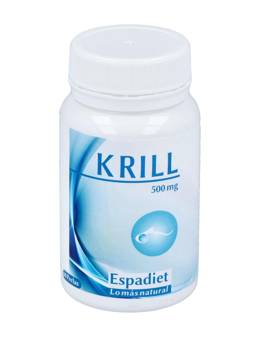 El Krill 500 Mg. 60Perlas de Espadiet es un suplemento nutricional para adultos que aporta ácidos grasos omega-3, facilitando el mantenimiento del bienestar general mediante su fórmula concentrada en aceite de krill.