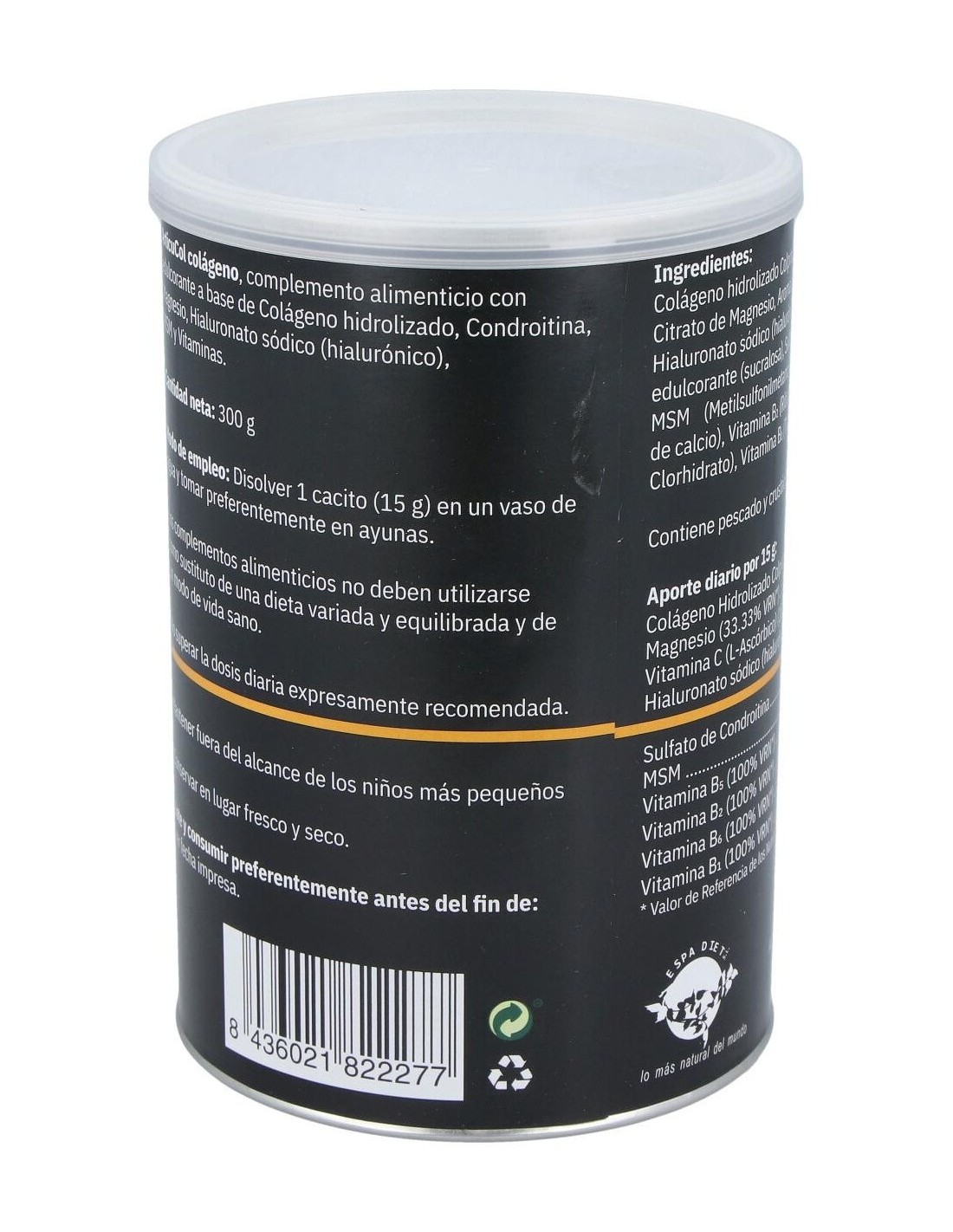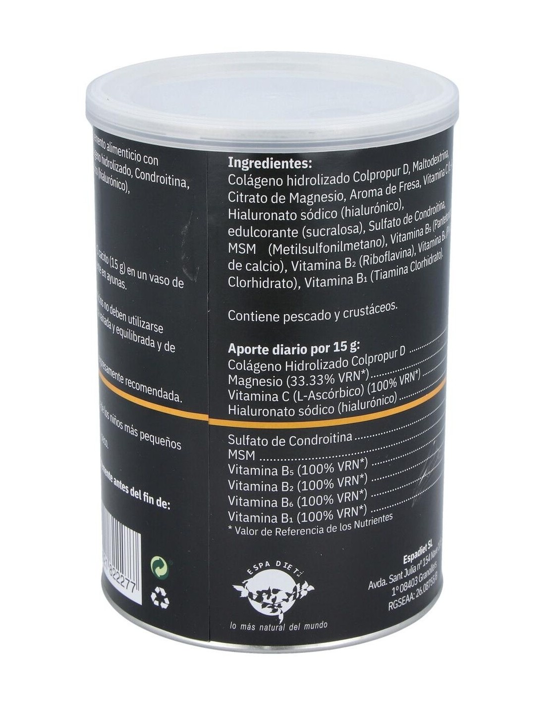El colágeno de Espadiet se obtiene mediante procesos que conservan sus propiedades, ofreciendo un producto con buena solubilidad y adaptado para integrarse en diferentes preparaciones. Su envase está diseñado para mantener la frescura y proteger el contenido de la humedad.