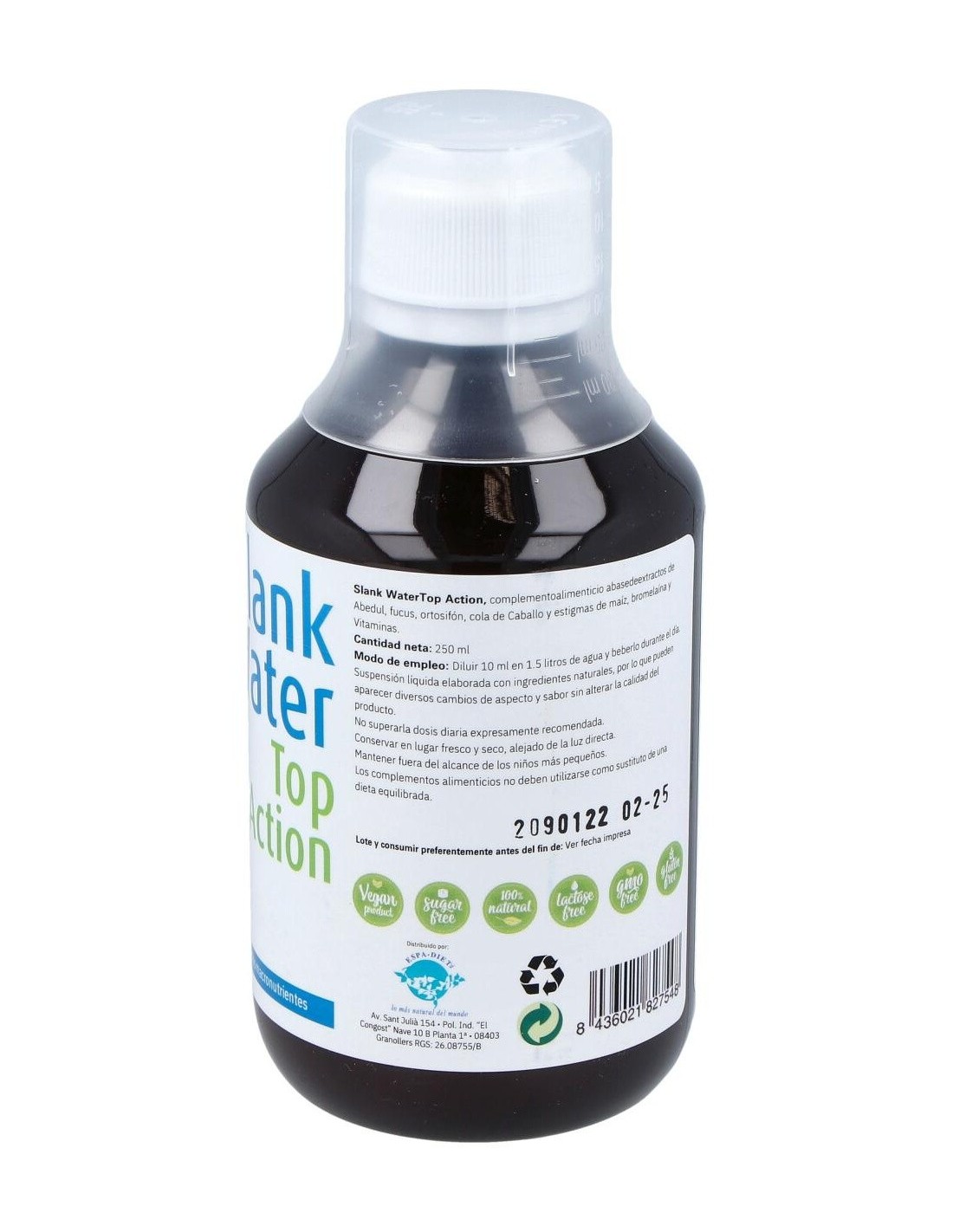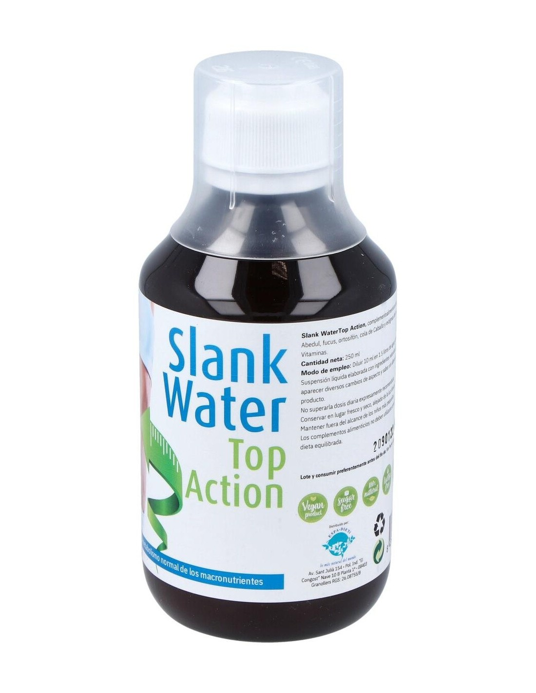 Facilita la diuresis contribuyendo a la eliminación de líquidos. SLANK WATER TOP ACTION 250ml.