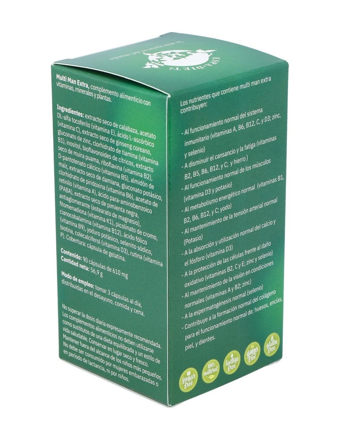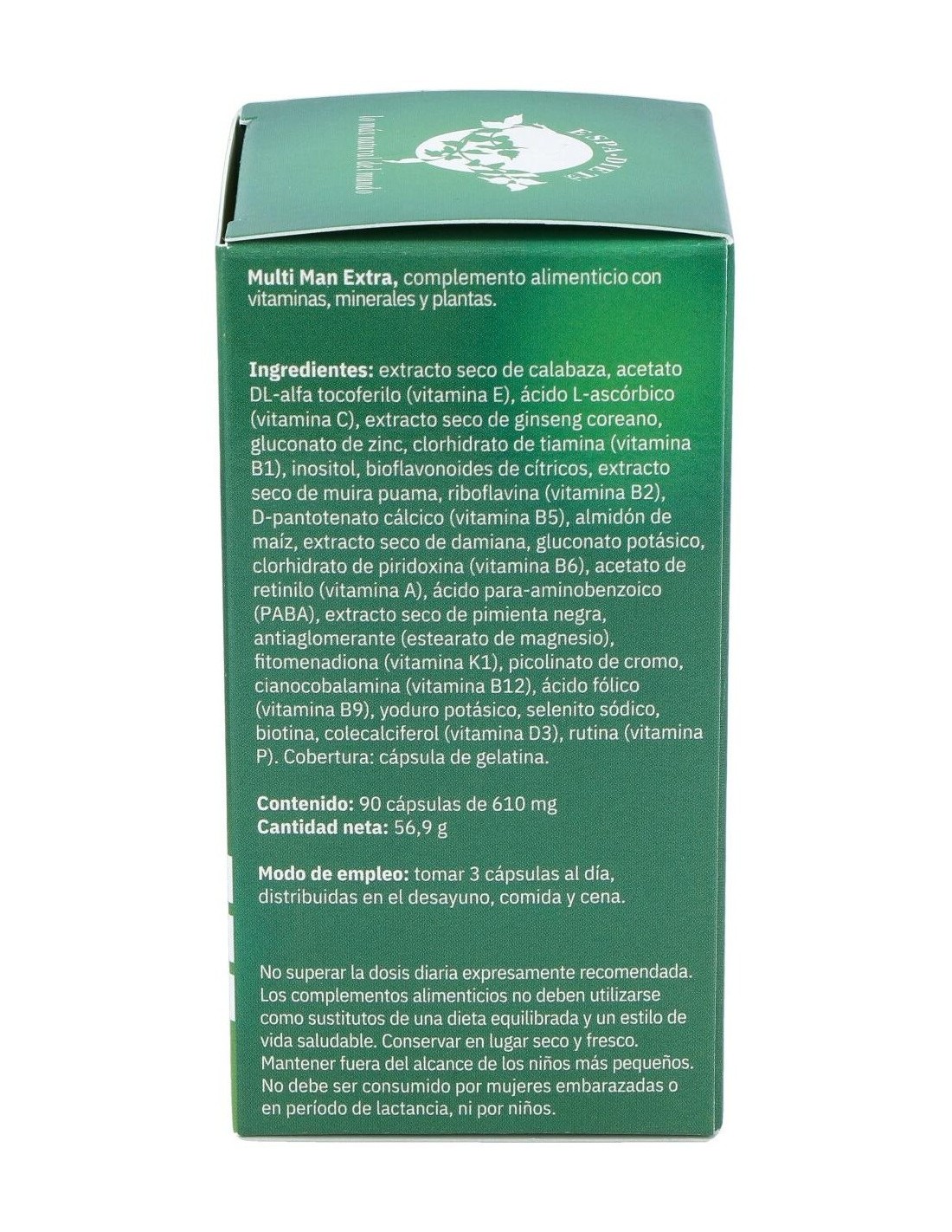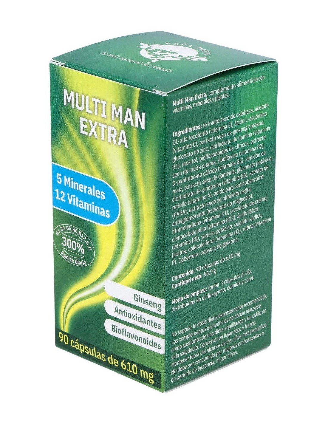Multi Man Extra 90Cap. Axium de Espadiet es un complemento diseñado para hombres que buscan apoyar su bienestar diario mediante una fórmula equilibrada. Este producto está pensado para quienes desean incorporar nutrientes específicos en su rutina habitual de cuidado personal.