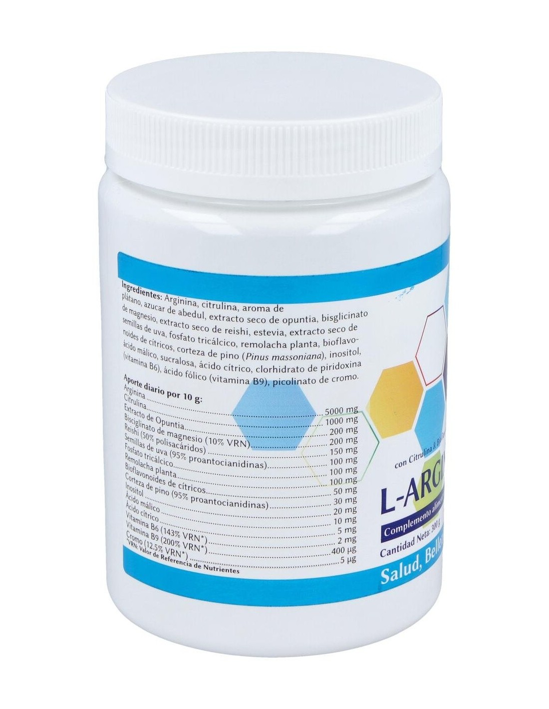 - Contiene L-Arginina, un aminoácido que contribuye a la síntesis proteica y al mantenimiento de funciones metabólicas normales.