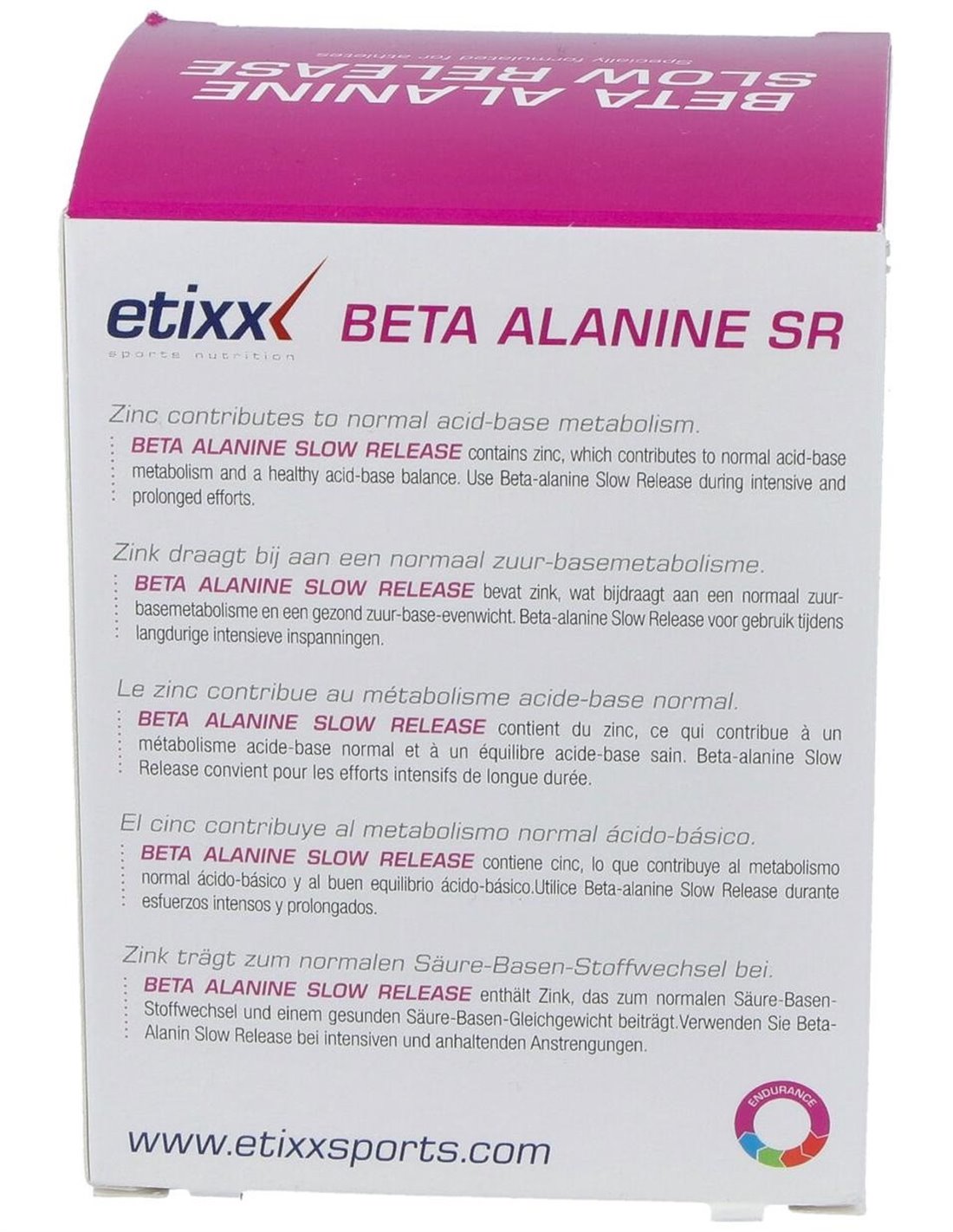 Etixx Beta Alanine Slow Release favorece el metabolismo ácido-base normal. Este complemento incorpora carnosina en su fórmula, que ayuda a evitar la acidificación. Al ser de liberación lenta (""""slow release"""") se disminuye el enrojecimiento; el principal efecto secundario.