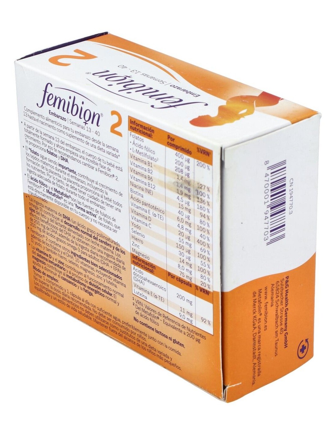 Comprimido: Agente de carga: celulosa microcristalina, óxido de magnesio, ascorbato cálcico, bisglicinato ferroso, agente de recubrimiento: hidroxipropilmetilcelulosa, colorante: carbonato cálcico, maltodextrina, nicotinamida, agente de carga: carboximetilcelulosa sódica reticulada, ácido cítrico, agentes de recubrimiento: alcohol polivinílico, polietilenglicol, hidroxipropilcelulosa y talco, óxido de zinc, acetato de DL-a-tocoferilo, D-pantotenato cálcico, antiaglomerante: sales de magnesio de ácidos grasos, ácidos grasos y fosfato dicálcico, sacarosa, almidón modificado, clorhidrato de piridoxina, mononitrato de tiamina, almidón, riboflavina, L-metilfolato cálcico (metafolin),ácido fólico, yoduro potásico, seleniato sódico, D-biotina, colecalciferol, cianocobalamina.