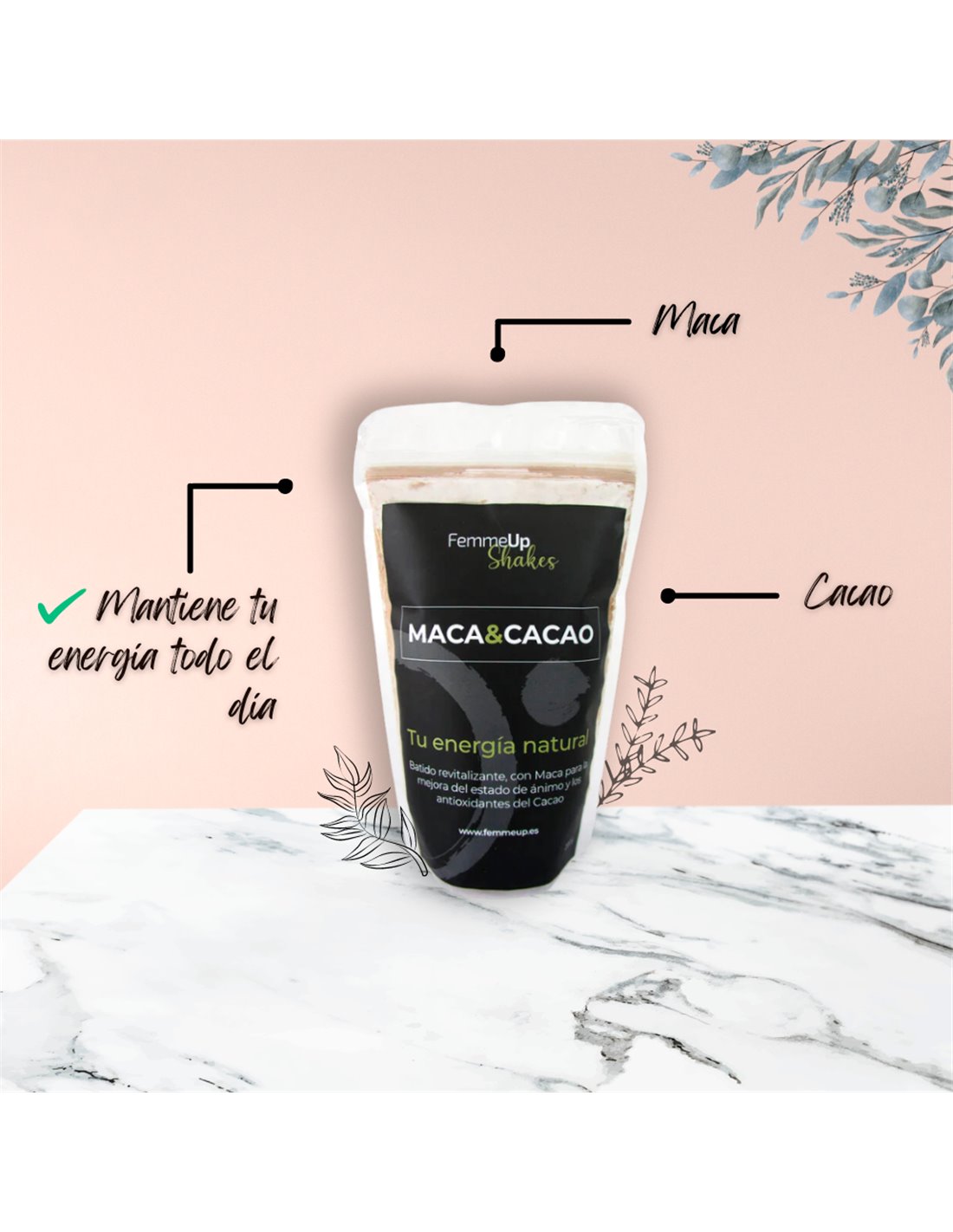 Energética mezcla de maca tricolor, cacao criollo, algarroba, y panela ecológicos, con un gusto muy agradable y aromático.