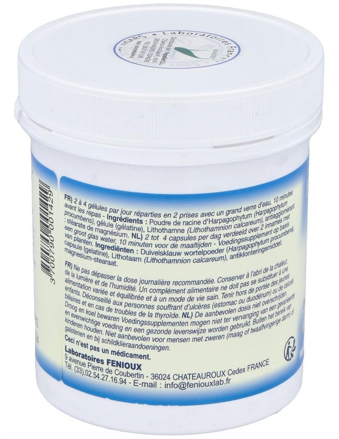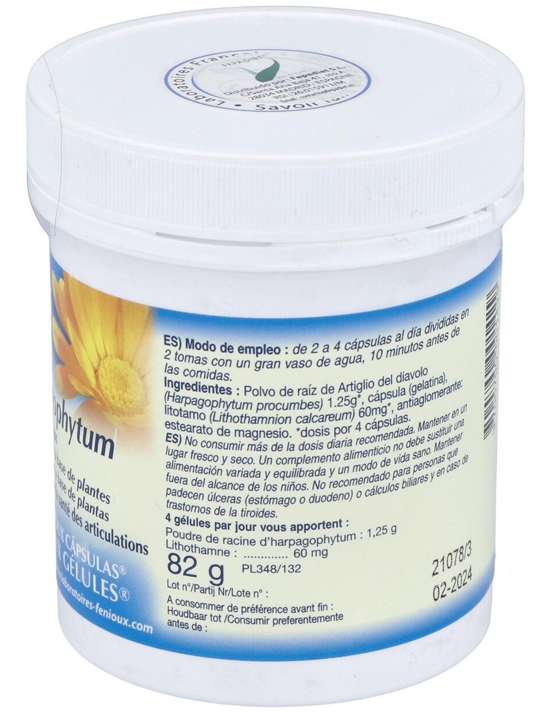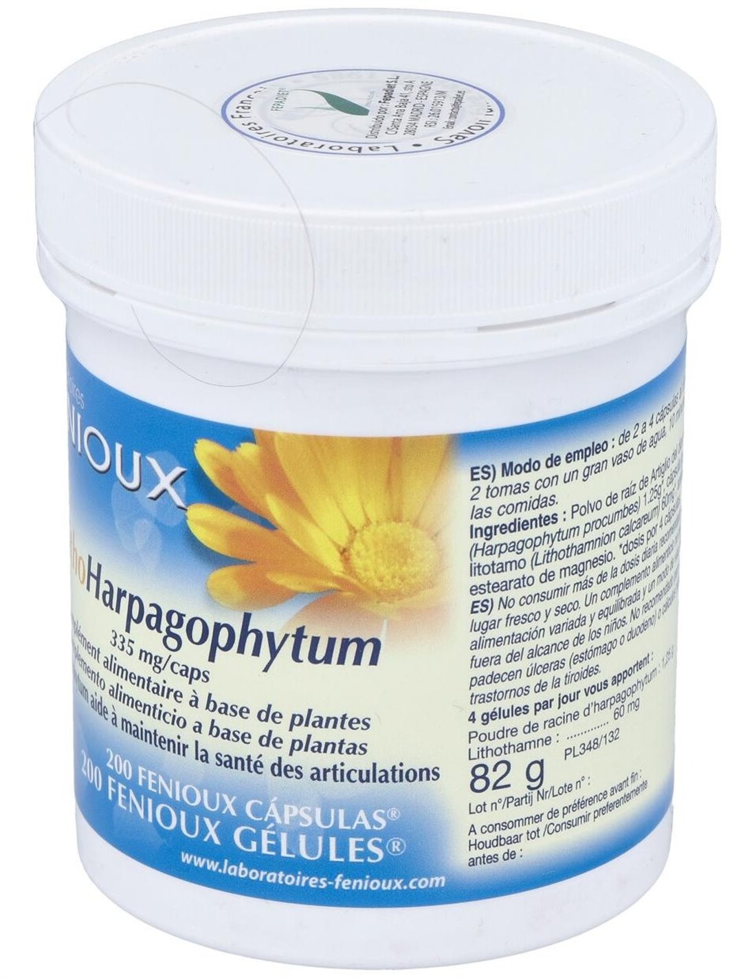 312 mg de polvo criotriturado de raíz de harpagofito (5% harpagósidos).