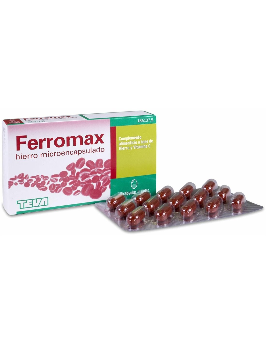 Complemento alimenticio a base de vitaminas y minerales que ayuda a cubrir las carencias alimentarias de hierro o en caso del aumento de las necesidades de este nutriente. Ferromax contiene una fuente de hierro que contribuye a la formación normal de glóbulos rojos y de hemoglobina. Aporta además Vitamina C que mejora la absorción del hierro ayudando a disminuir el cansancio y la fatiga. Está diseñado para reducir la reactividad del hierro y mejorar su biodisponibilidad. Apto para embarazadas y periodo de lactancia bajo consejo médico. Apto para diabeticos.