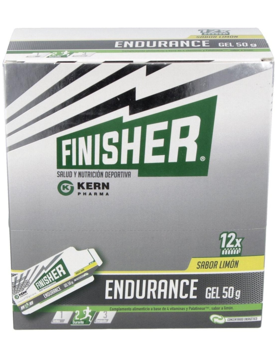 Kern Pharma | Finisher® Endurance 12 gelesx50gFinisher® Endurance 12 gelesx50g es un gel que contribuye al metabolismo energético normal. Ayuda a disminuir el cansancio y la fatiga y mejora el rendimiento físico gracias a su fórmula rica en hidratos de carbono de rápida absorción y las vitaminas B1, B6 y B12.