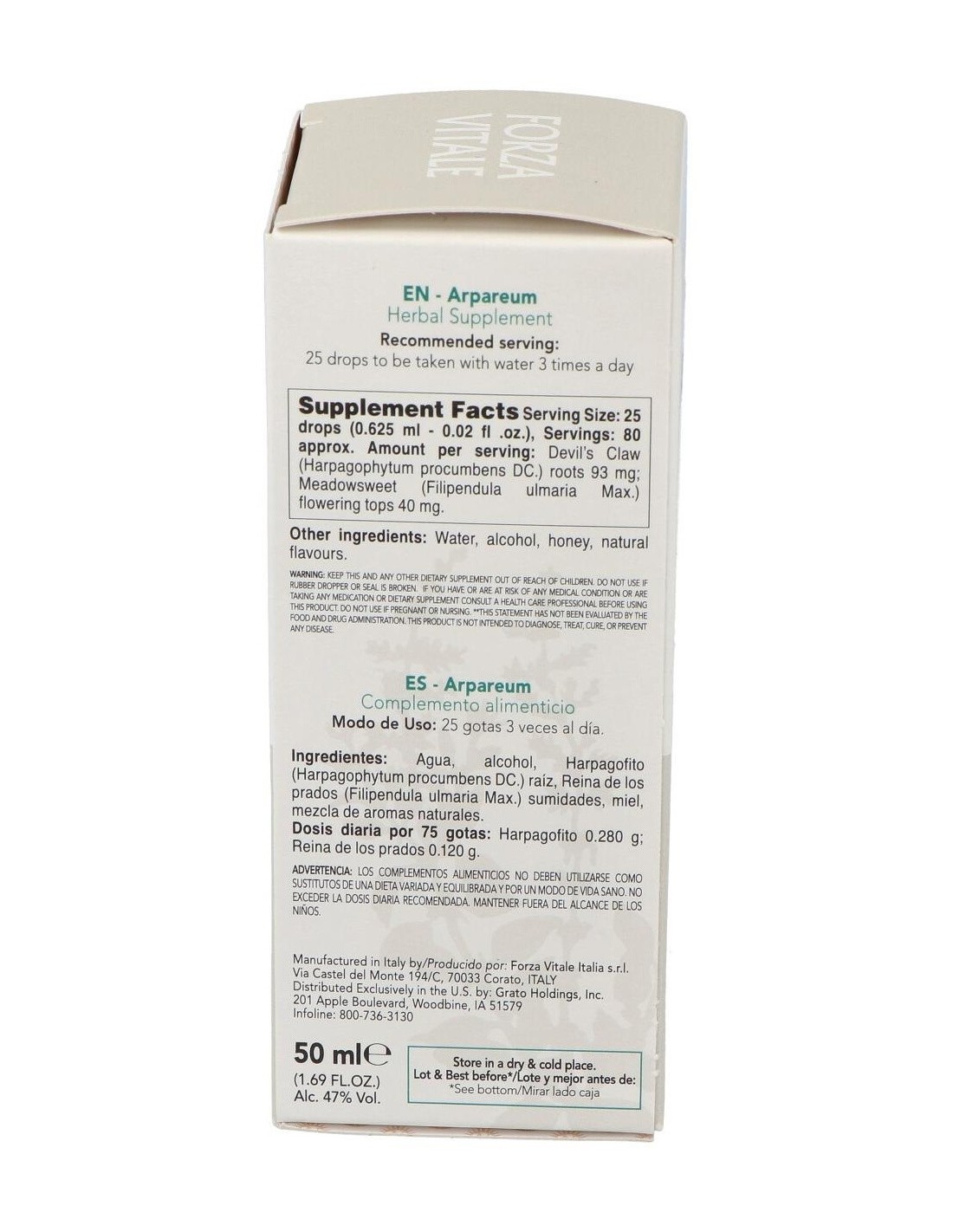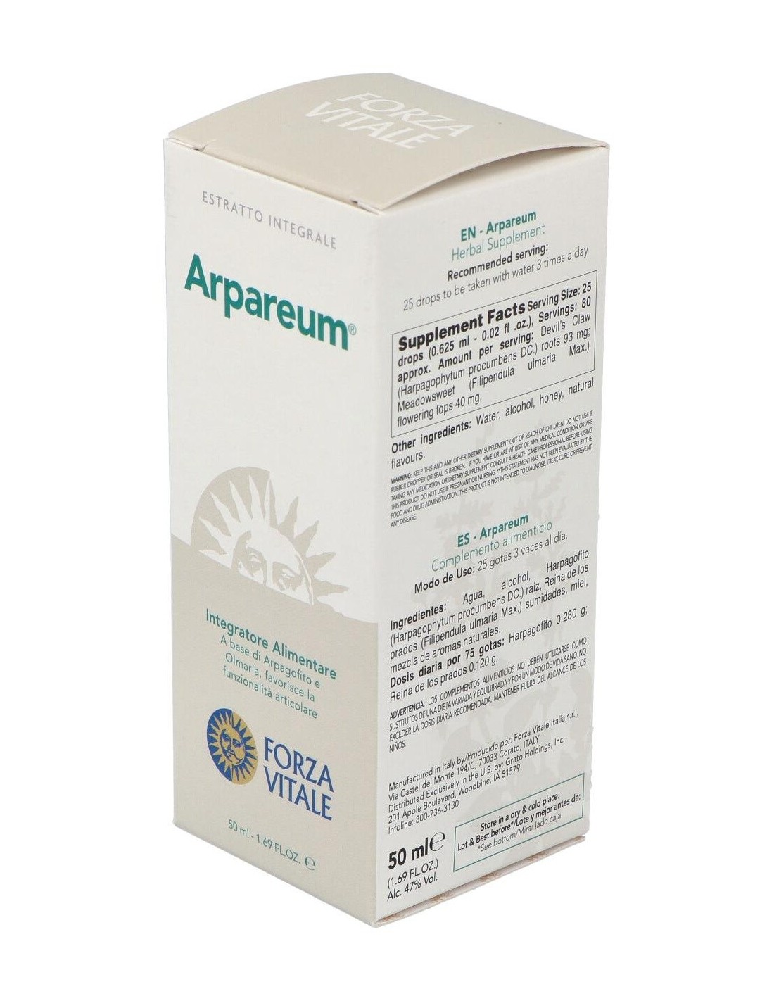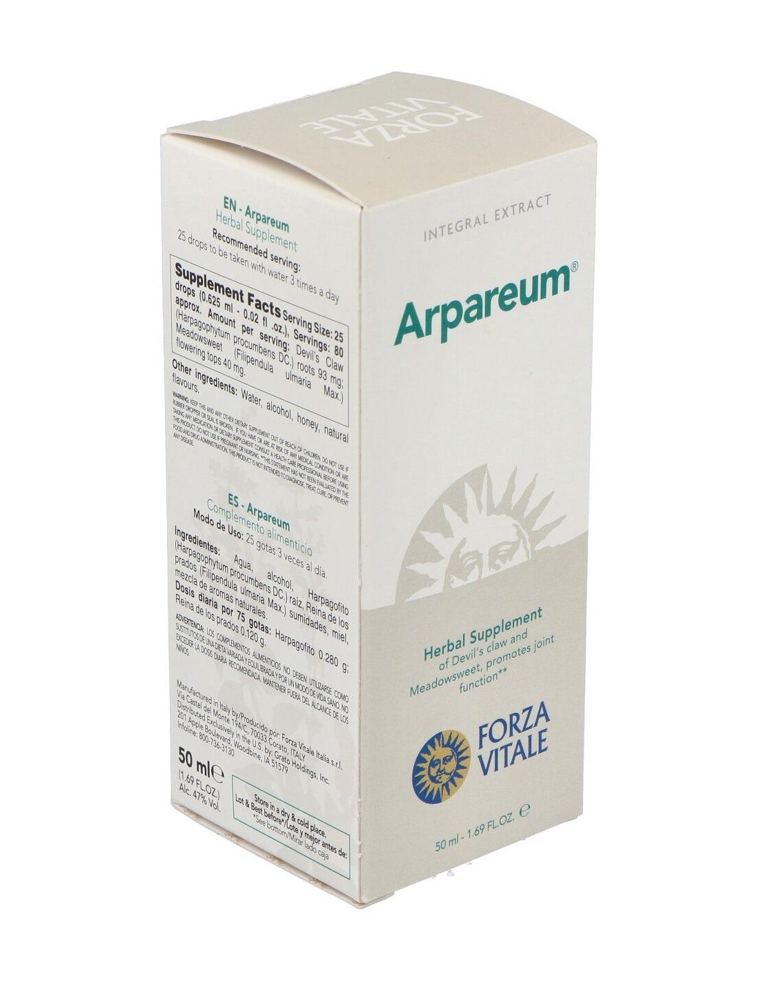 Ingredientes:Agua, Alcohol, Harpagofito (Harpagophytum procumbens) raíz, Ulmaria (Filipendula ulmaria) sumidades, miel, mezcla de aromas naturales. Ingredientes activos por dosis diaria (2 ml):