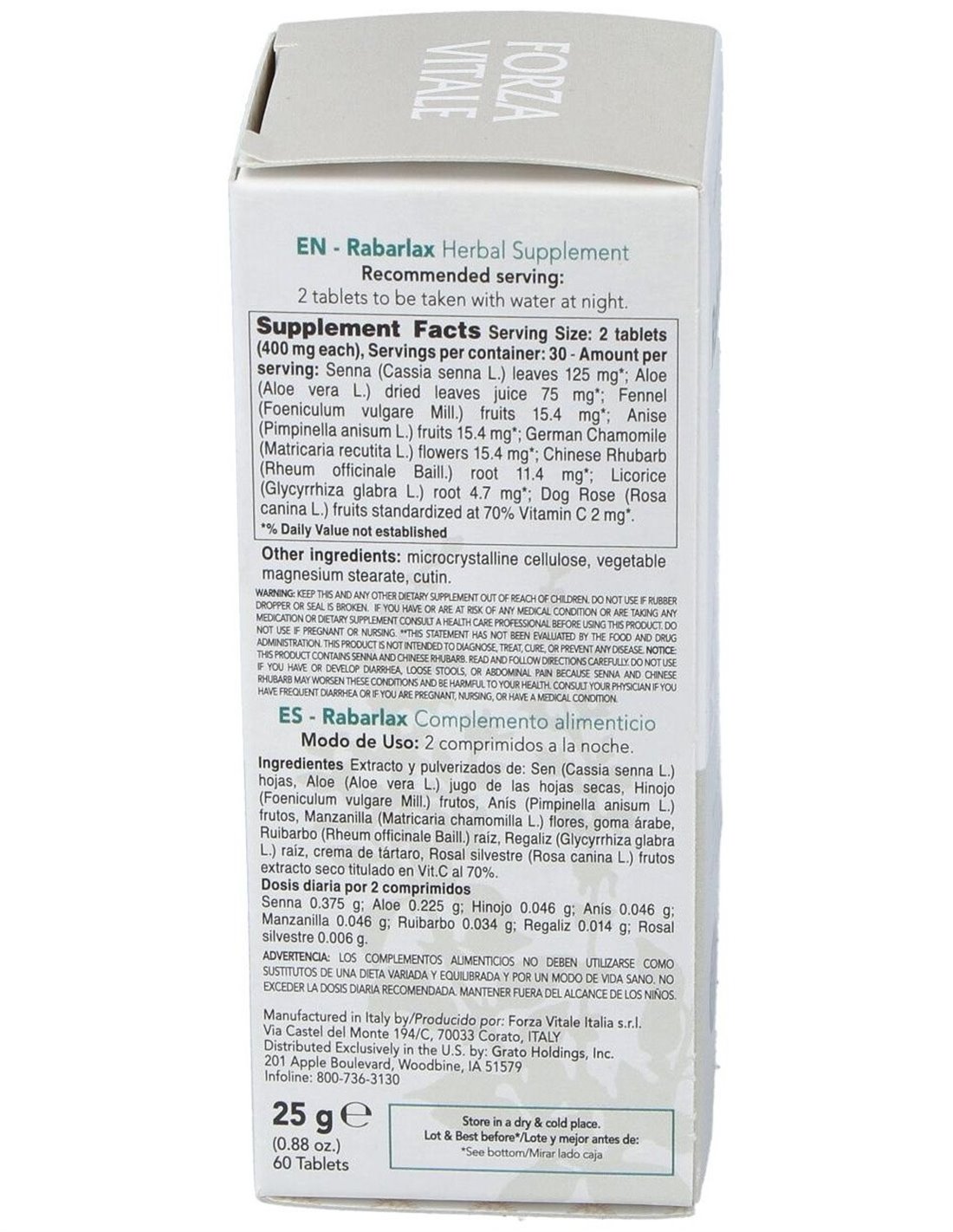 Rabarlax Laxante 25Gr.Comprimidos de Forza Vitale