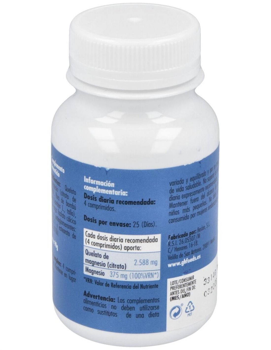 - Contiene magnesio en forma quelada, lo que facilita su absorción y aprovechamiento por el organismo.