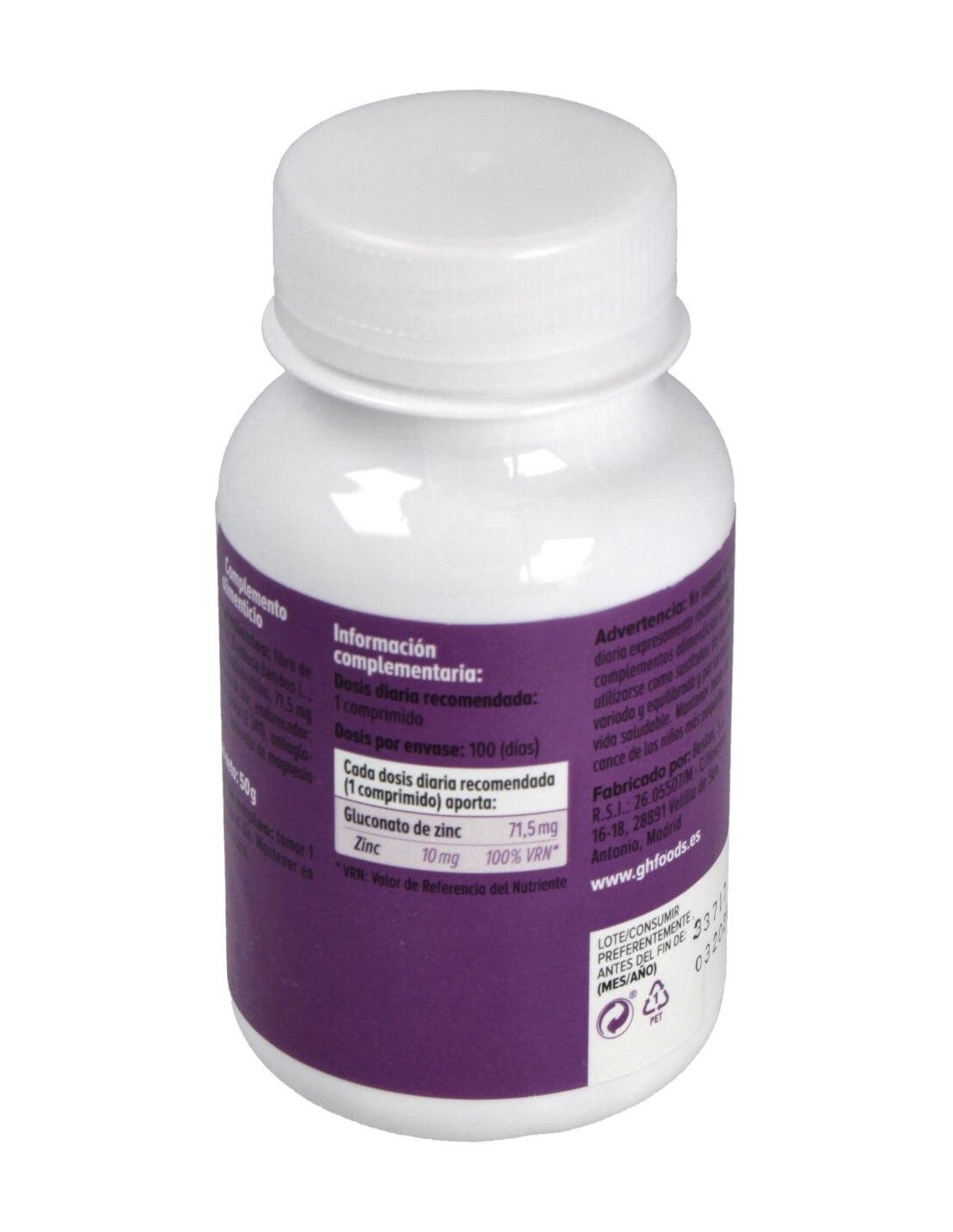 Zinc 100Comp. de Ghf ofrece una opción accesible para quienes desean complementar su dieta con zinc, apoyando sus necesidades nutricionales cotidianas.