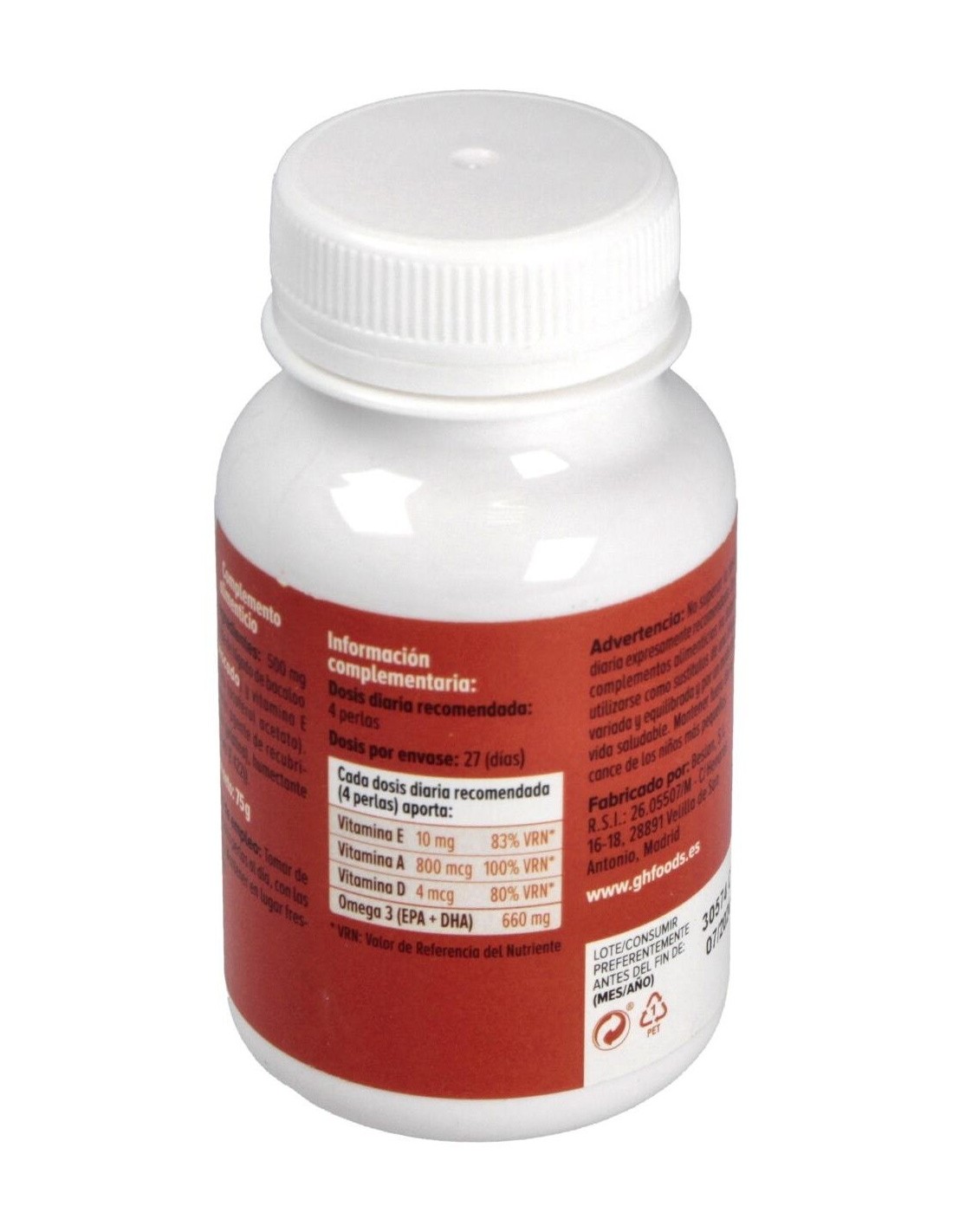 Muchos son los motivos que nos llevan a disminuir la cantidad de pescado en nuestra dieta, por gustos personales, el precio del pescado o falta de tiempo, afectando al equilibrio de la dieta en cuanto a vitaminas y nutrientes para el cuerpo.GHF hígado de bacalao está específicamente formulado para mejorar los aportes de ácidos grasos Omega 3 a nuestro cuerpo.