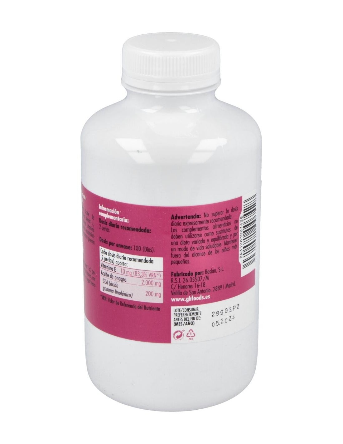 - Cada perla contiene 1400 mg de aceite de onagra, aportando una fuente concentrada de ácidos grasos.