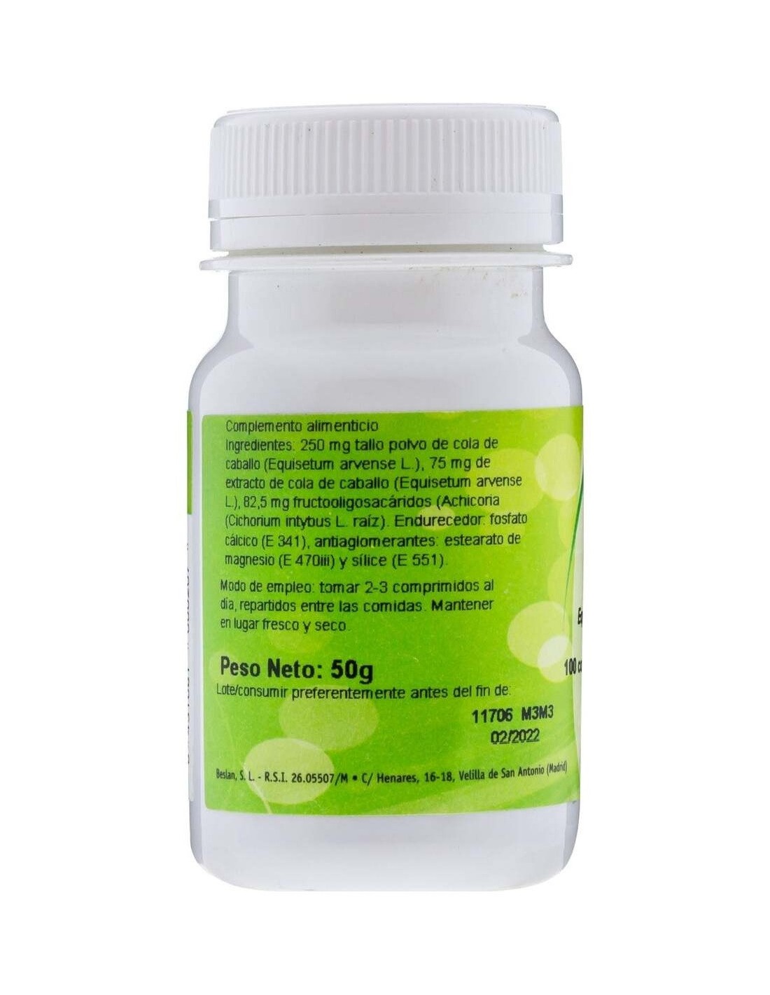 - Cada comprimido contiene 500 mg de extracto de cola de caballo, facilitando una dosificación práctica y constante.