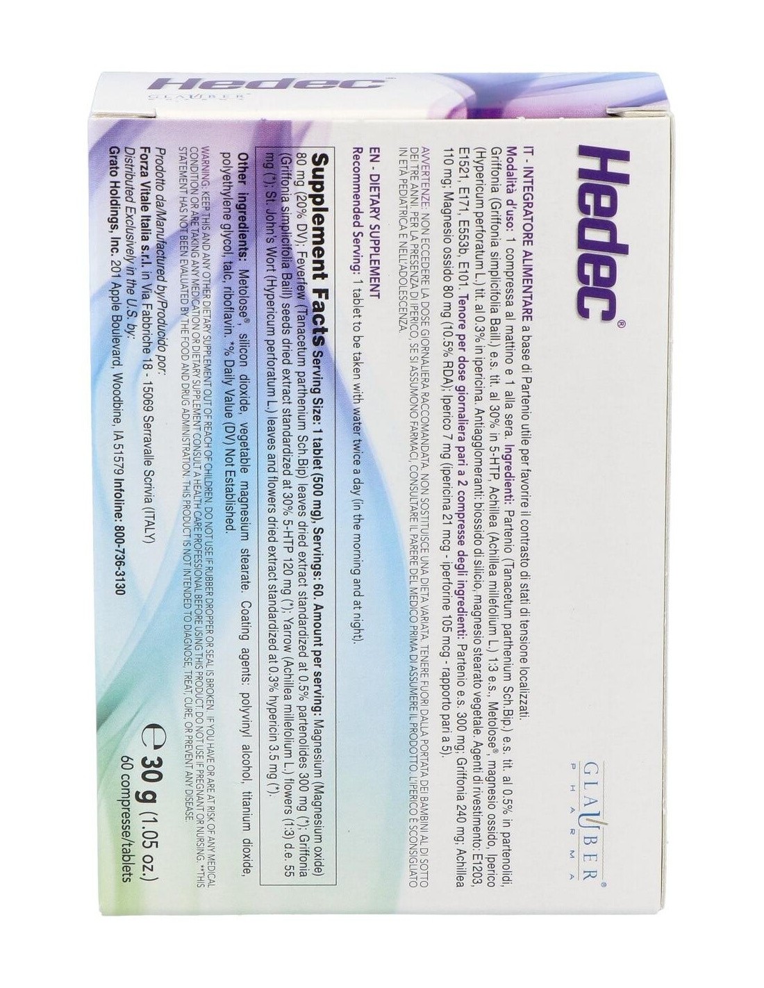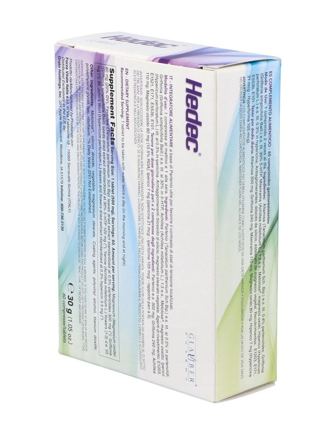 Elaborado con ingredientes de calidad, Hedec 60Comp. de Glauber Pharma se presenta en un envase que protege su integridad y facilita su almacenamiento. Su diseño permite una administración sencilla, adaptándose a las necesidades de quienes buscan complementar su alimentación.