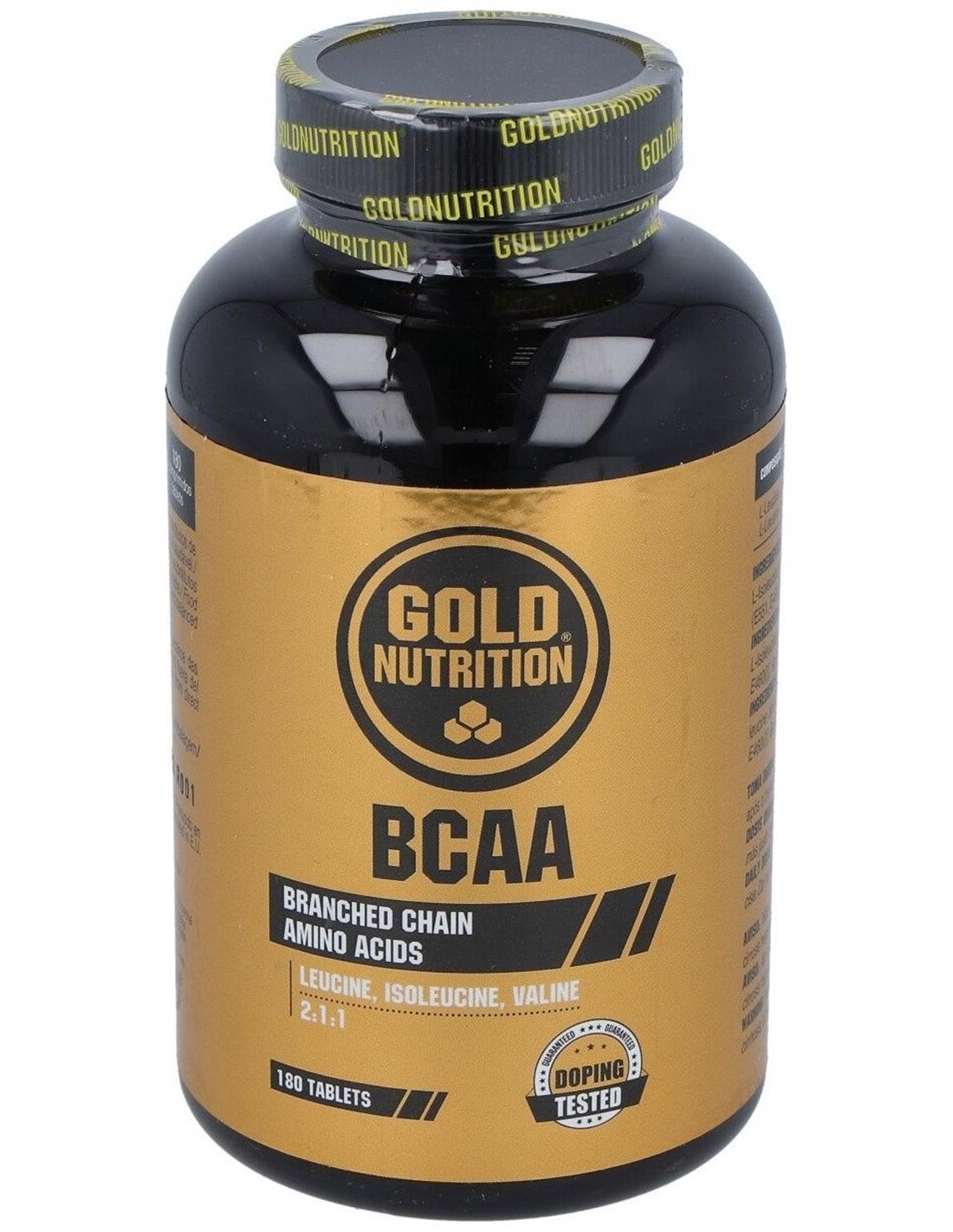 Mezcla de L-Leucina, L-Isoleucina y L-Valina (2:1:1) (95%), Agentes de carga (dióxido de silicio, celulosa microcristalina), Antiaglomerante (estearato de magnesio).