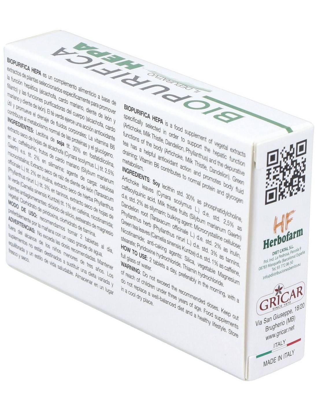 El Biopurifica Hepa 30Comp. de Gricar es un suplemento natural para personas que buscan apoyar la función hepática, formulado con ingredientes que contribuyen a la depuración y cuidado del hígado.
