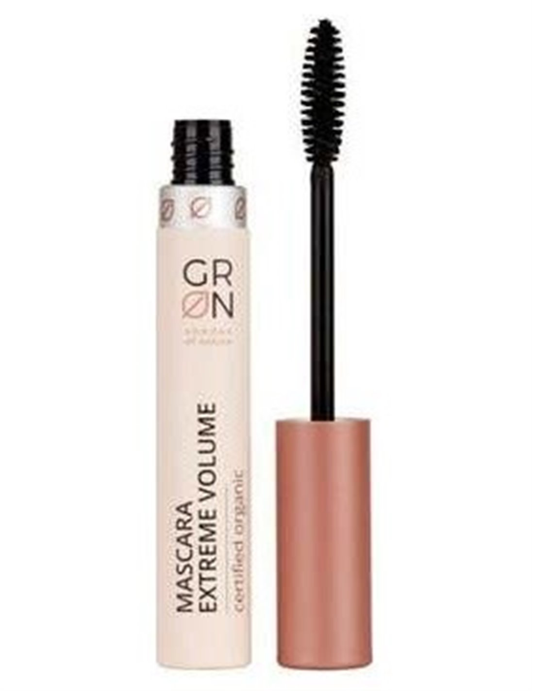 Máscara de pestañas para un volumen intenso, con un negro profundo como el granito, contiene aloe vera que cuida y protege las pestañas. Fórmula vegana. Producto certificado Cosmos Organic.