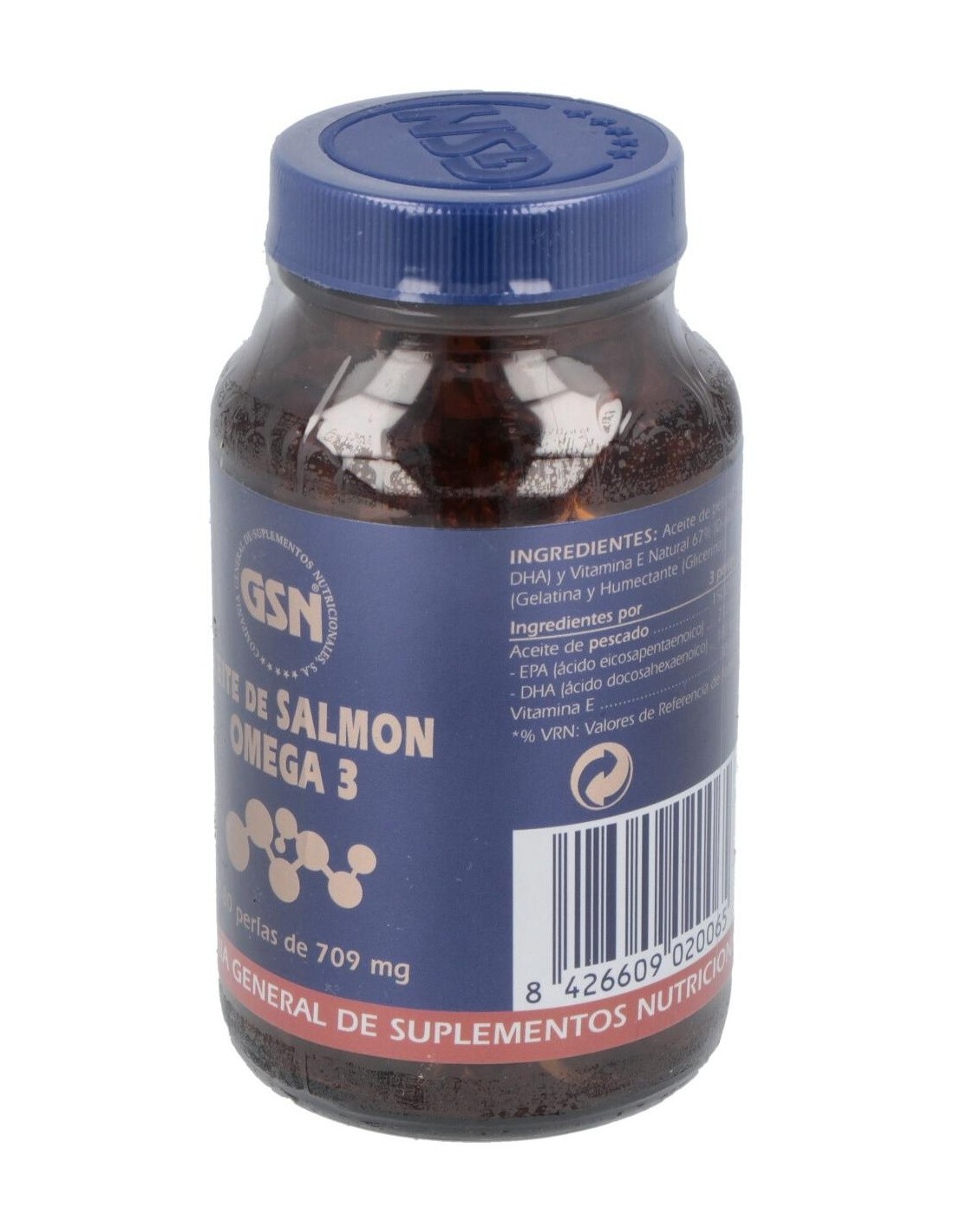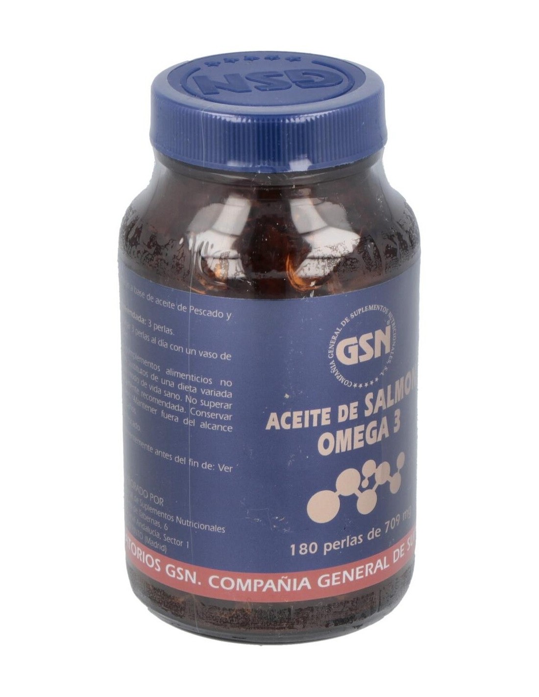 El Omega 3 Aceite De Salmón 180 Perlas de GSN es un suplemento nutricional para adultos que aporta ácidos grasos esenciales, contribuyendo al bienestar general mediante su fórmula concentrada en aceite de salmón.