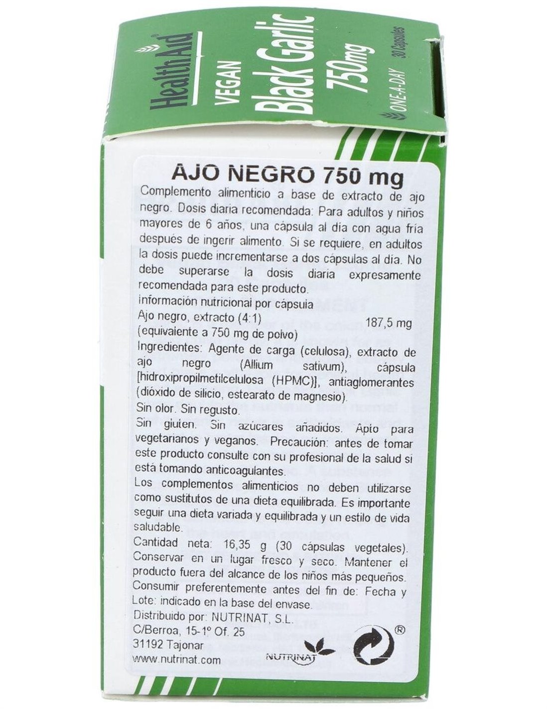 **Ajo Negro (Rico En S-Alilcisteina) 30Vcap. Health de Health Aid** es un suplemento diseñado para personas interesadas en complementar su dieta con ingredientes derivados del ajo fermentado. Su formulación se enfoca en aportar compuestos específicos que se encuentran en el ajo negro, adaptándose a quienes buscan opciones naturales para su bienestar diario.
