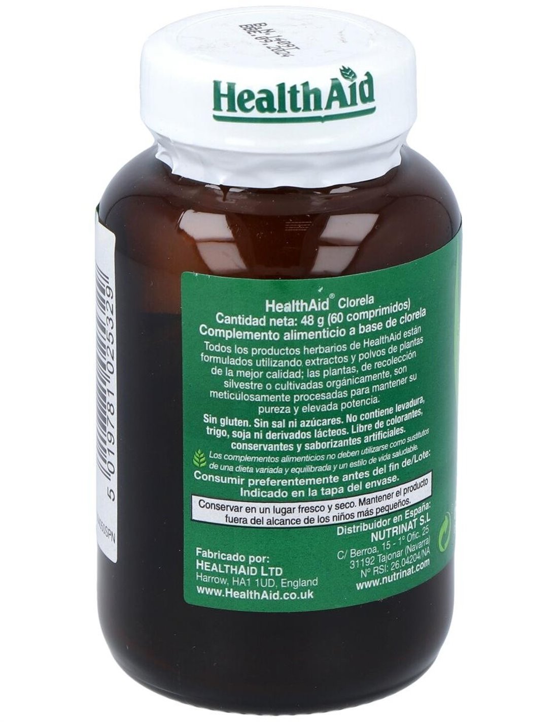 El Chlorella 550Mg. 60Comp. Health Aid de Health Aid es un suplemento nutricional para personas que buscan apoyar su bienestar general, aportando nutrientes esenciales a través de su fórmula concentrada de chlorella.