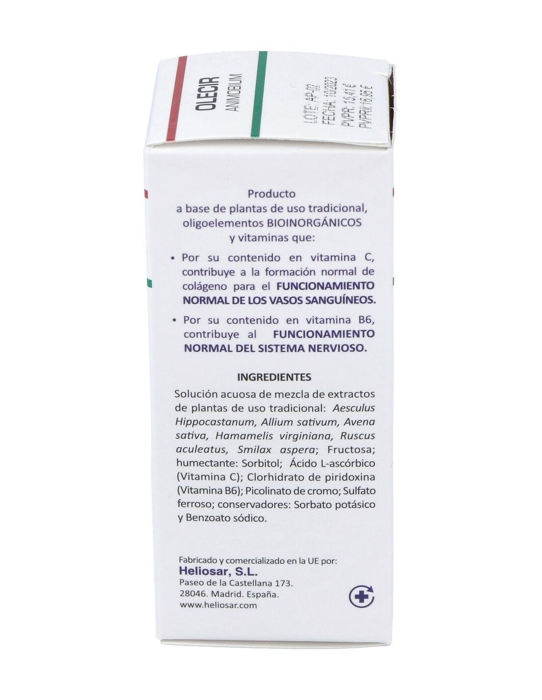 Complemento alimenticio en forma de solución acuosa para tomar en forma de gotas, que contribuyen al mantenimiento de la función circulatoria. Formulado con plantas de uso tradicional, hierro, cromo, vitamina C y B6.