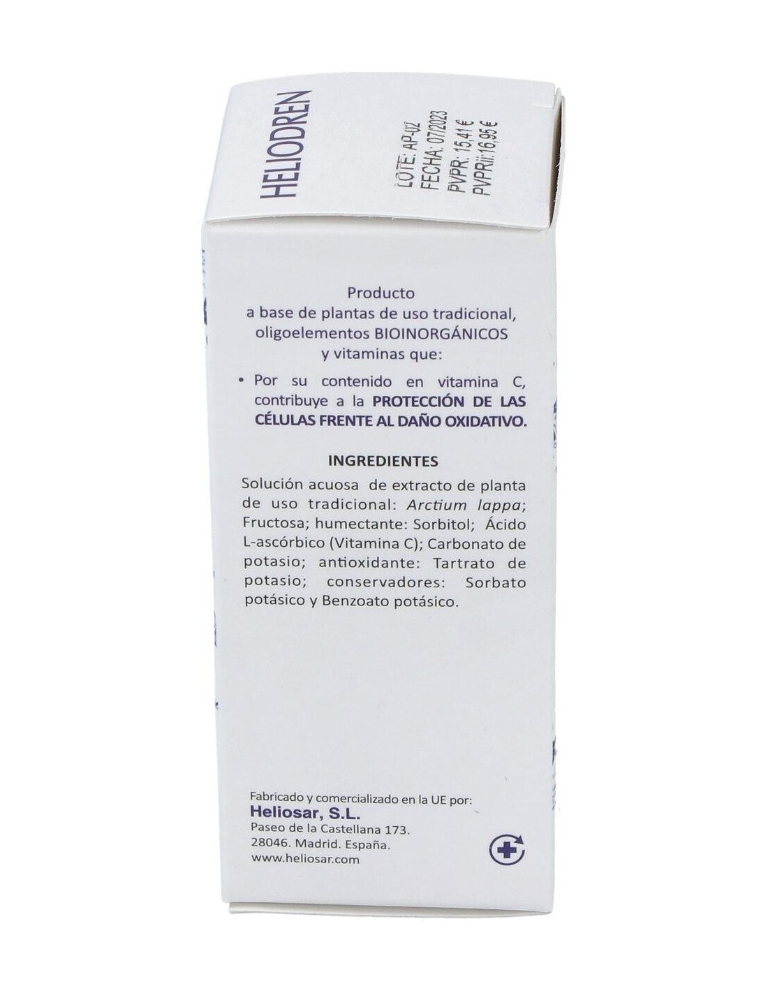 Complemento alimenticio en formato líquido con práctico dosificador de gotero, elaborado a base de extractos de arctium lappa y vitamina C, especialmente desarrollado para favorecer la hidratación del organismo y facilitar la disolución de cálculos y arenillas.