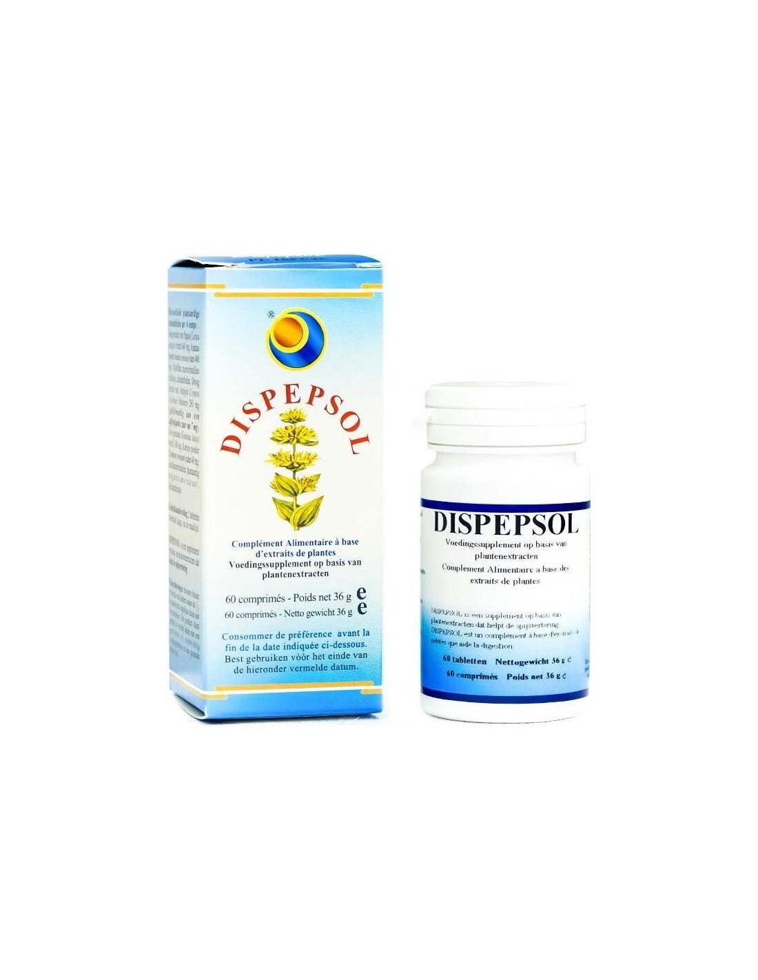 Dispepsol de Herboplanet es un complemento alimenticio a base de principios vegetales, desde siempre conocidos por sus beneficiosos efectos. La papaya y piña contribuyen a la función digestiva. Alcachofa y genciana contribuyen a la función digestiva, del hígado y a la eliminación de gas intestinal. La alcaravea contribuye a la función digestiva, a la regular motilidad gastrointestinal, y a la eliminación de los gases.Dispepsol de Herboplanet es un complemento alimenticio recomendado en casos de obesidad, digestión difícil, celulitis y en los casos en los que haya un estado ponderal en exceso, dilatación del estómago, dispepsias, gastritis crónicas y úlcera gástrica.Ingredientes por 4 comprimidos:Extracto seco de Papaya (Carica papaya) fruto 640 mg, Ananás (Ananas sativus) tallo en polvo 400 mg. Fosfato de Calcio, Celulosa microcristalina. Extracto seco de Alcachofa (Cynara scolymus) hojas 280 mg (aporte en ácido cafeilquinico 7 mg), extracto seco de Genciana (Gentiana lutea) raíz 240 mg, Alcaravea (Carum carvi) semillas en polvo 40 mg. Antiaglomerantes: estearato de magnesio vegetal, dióxido de silicio.Modo de empleo:Tomar 1 o 2 comprimidos durante o después de las comidas.Presentación:Envase de 60 comprimidos.